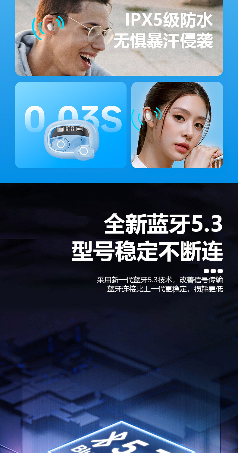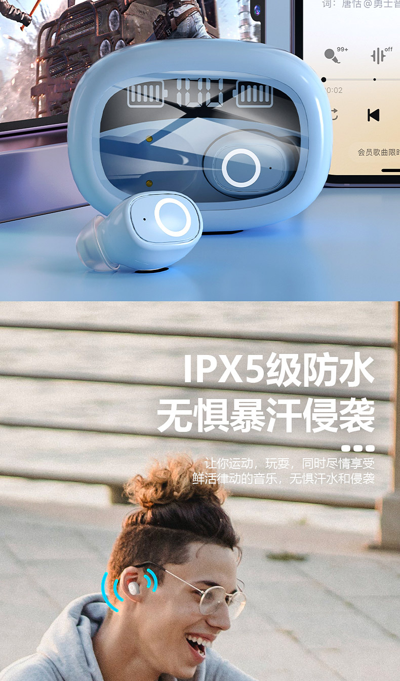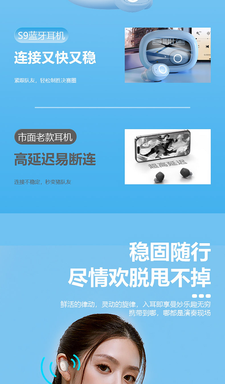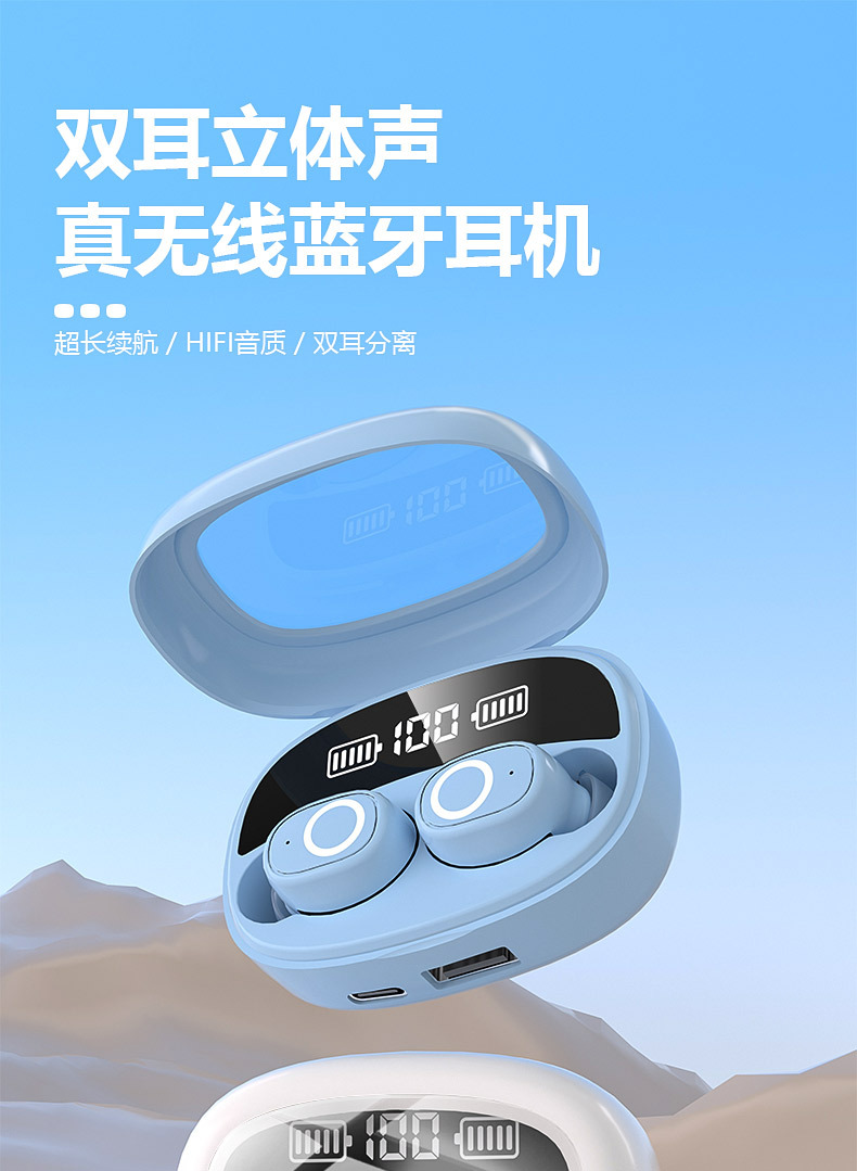 국경 간 새로운 S9 블루투스 헤드셋 진정한 무선 이어폰 5.3 투명 스마트 디지털 디스플레이 헤드셋 소음 감소 긴 배터리 수명