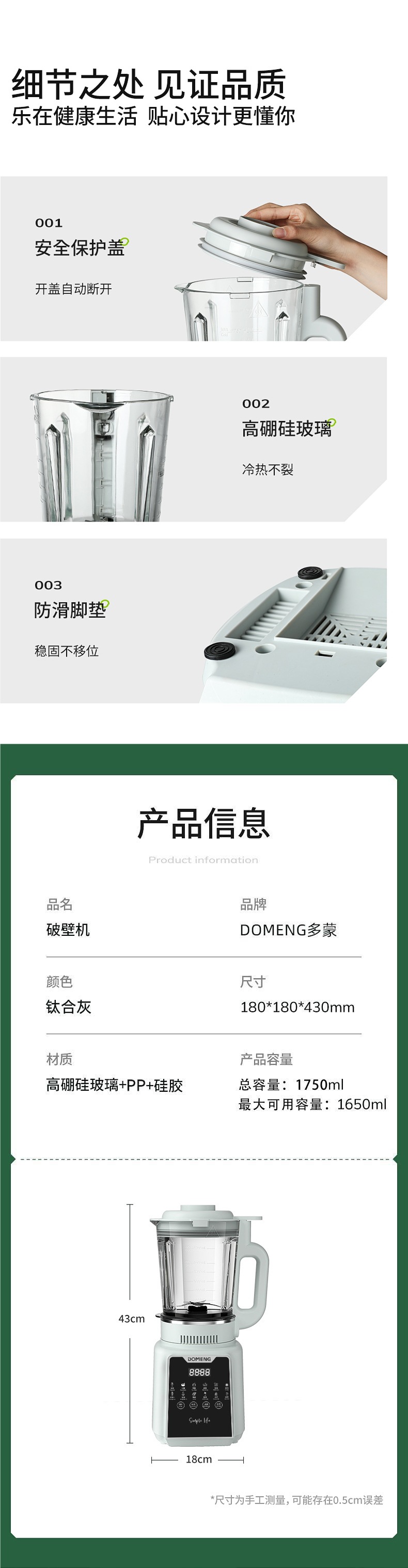 Domon 벽 파괴 기계 가정용 완전 자동 가열 두유 기계 다기능 필터 프리 스마트 라이트 음식 기계 유럽스토어 가기
