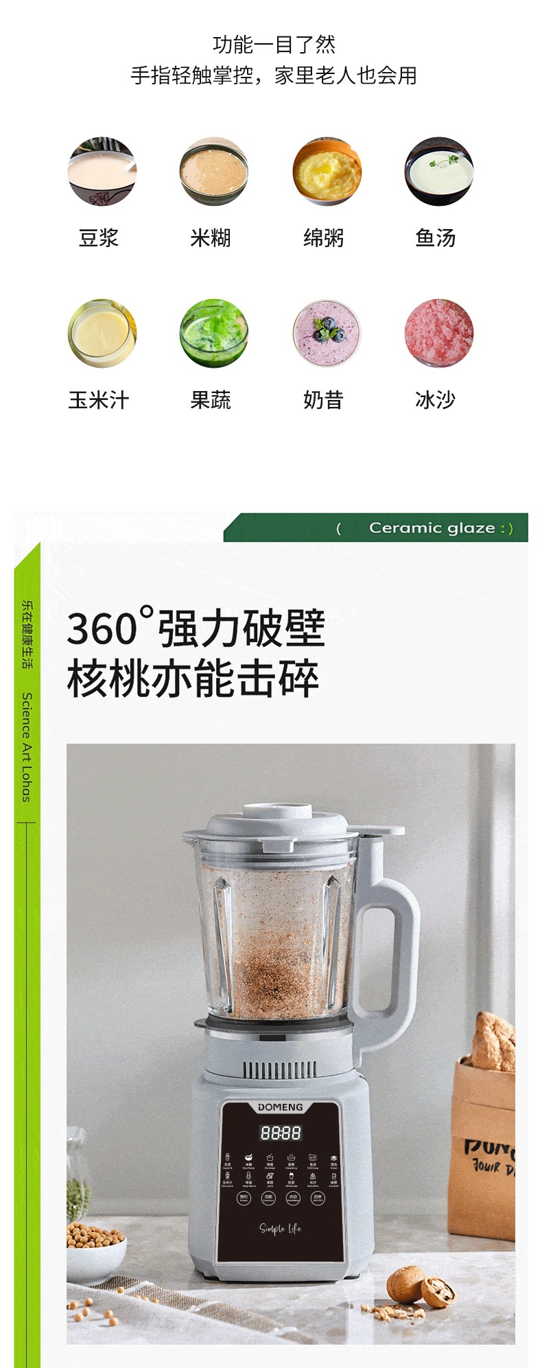 Domon 벽 파괴 기계 가정용 완전 자동 가열 두유 기계 다기능 필터 프리 스마트 라이트 음식 기계 유럽