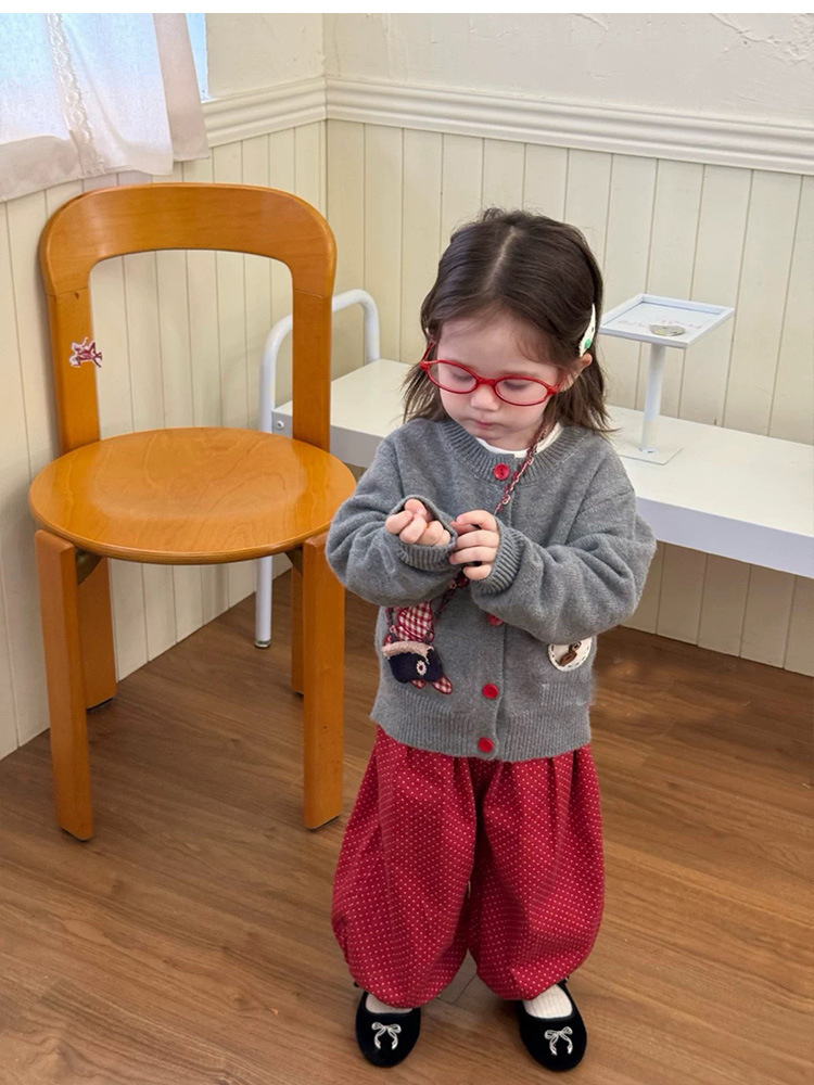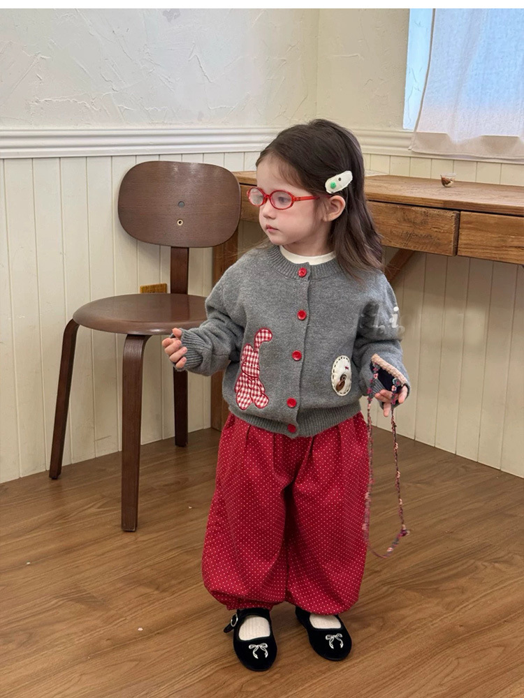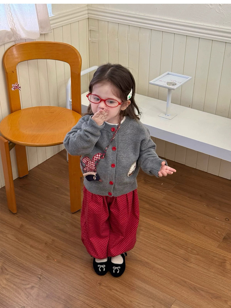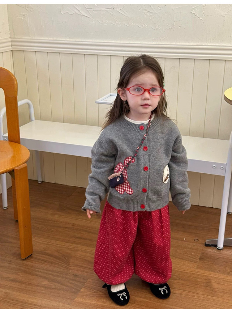 어린이 한국어 만화 패치 싱글 브레스트 니트 카디건 한국 아동복 25 가을 새 여자 스웨터 재킷스토어 가기