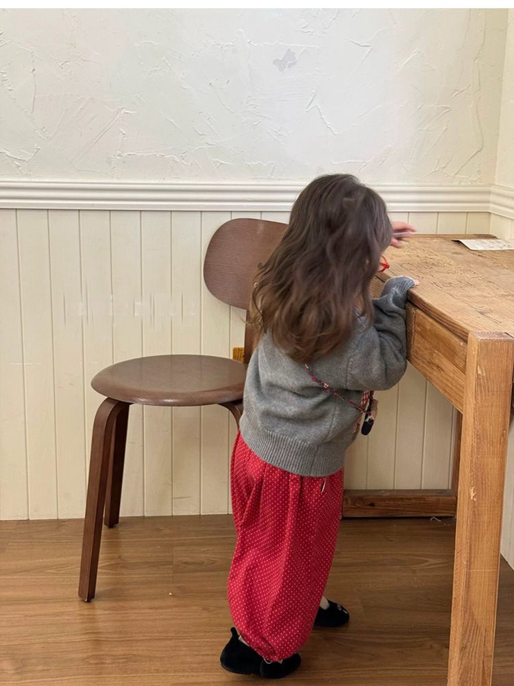 • 그레이 레드 버튼 버니 스웨터