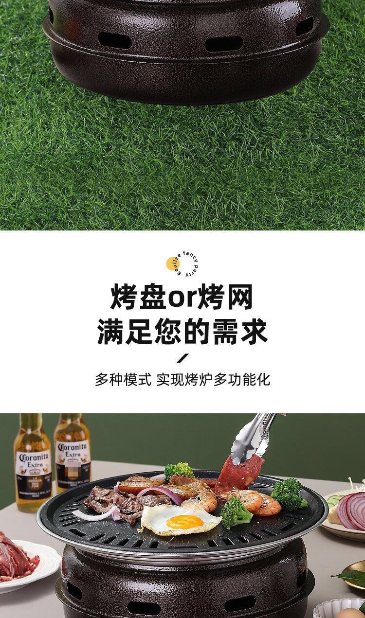 한국식 목탄 바베큐 그릴, 상업용 가정용 원형 바베큐 그릴, 차 요리용 야외 캠핑 휴대용 바베큐 그릴스토어 가기