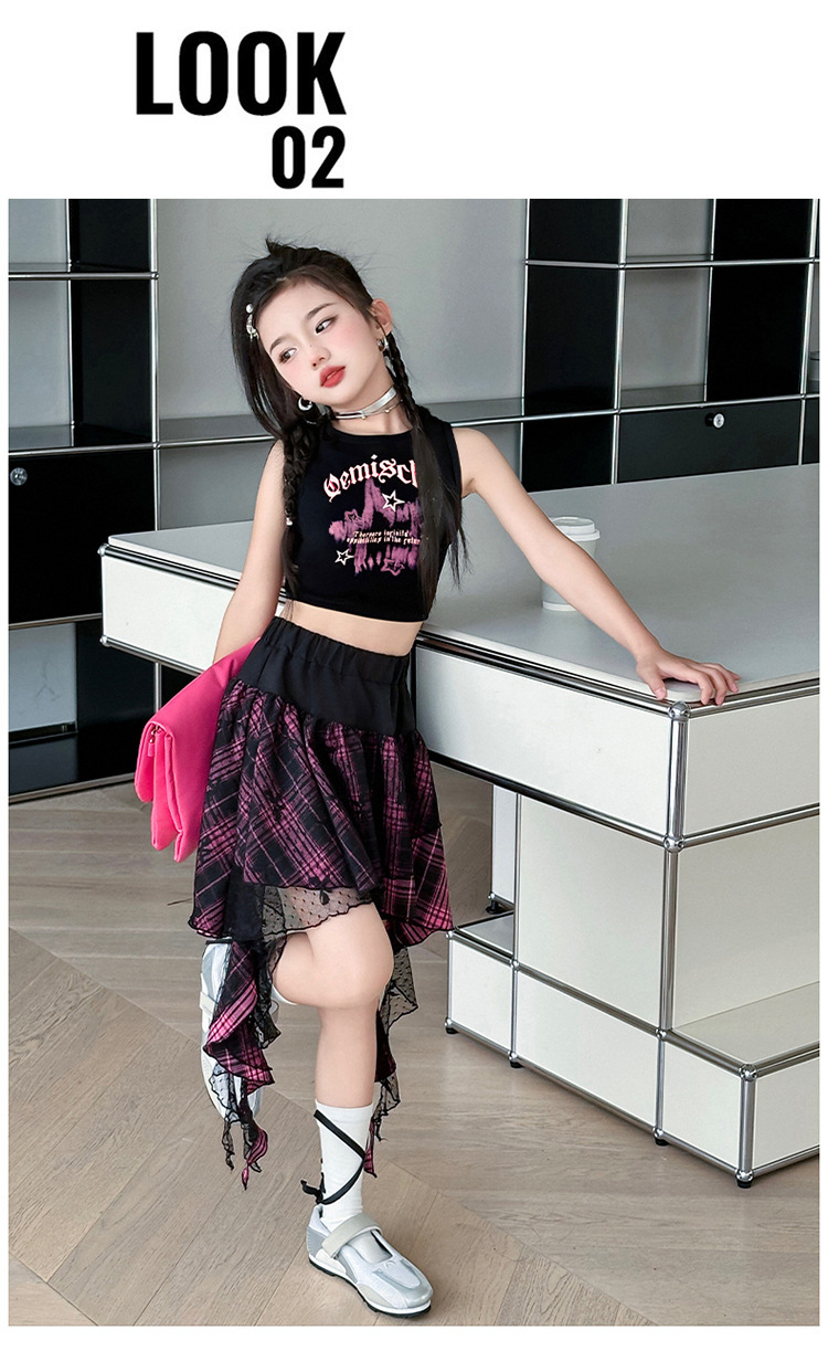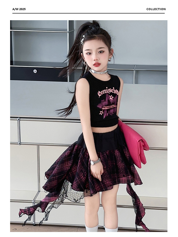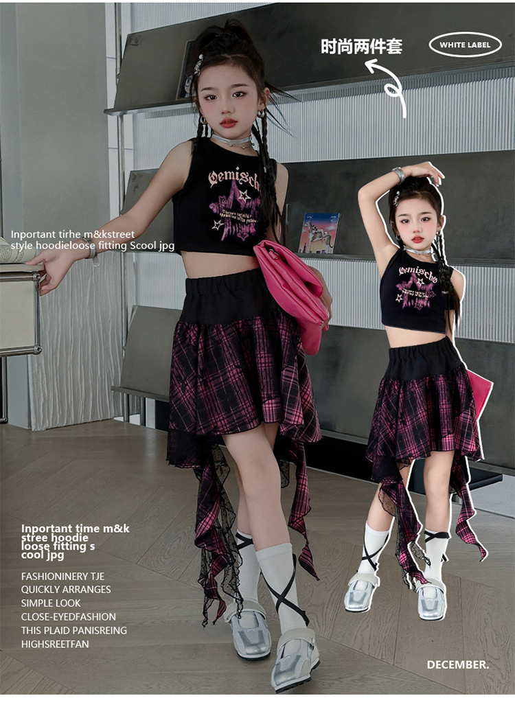 여자 반팔 스커트 정장 여름 2025 새로운 스타일 여자 거즈 스커트 큰 어린이 여름 짧은 치마 투피스 세트스토어 가기