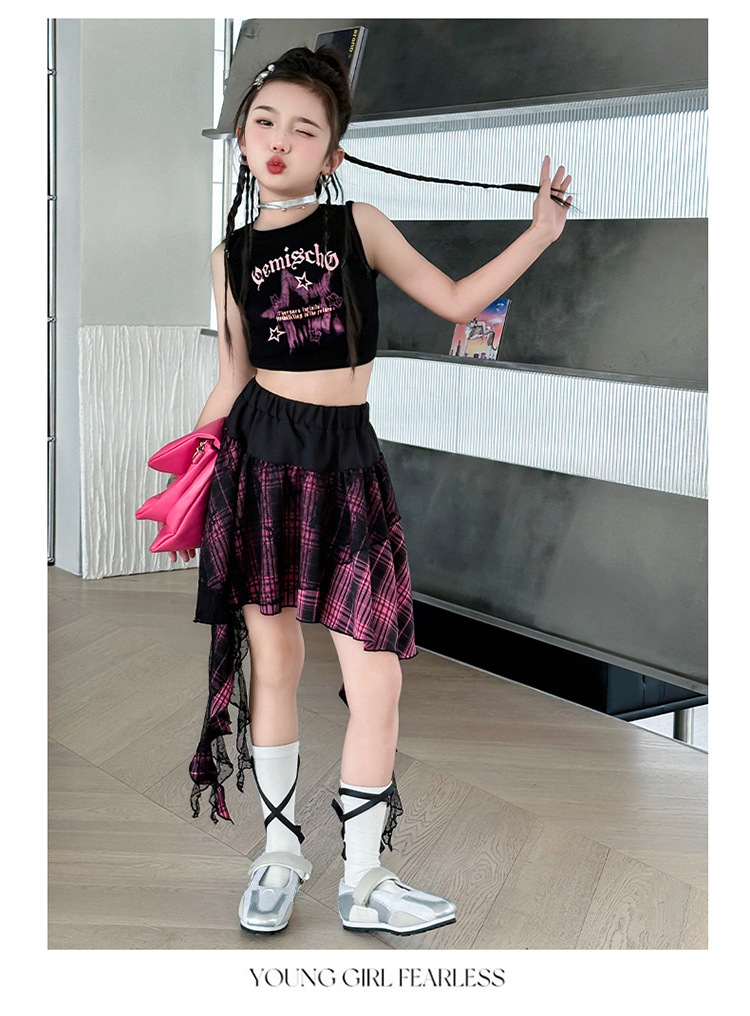 여자 반팔 스커트 정장 여름 2025 새로운 스타일 여자 거즈 스커트 큰 어린이 여름 짧은 치마 투피스 세트