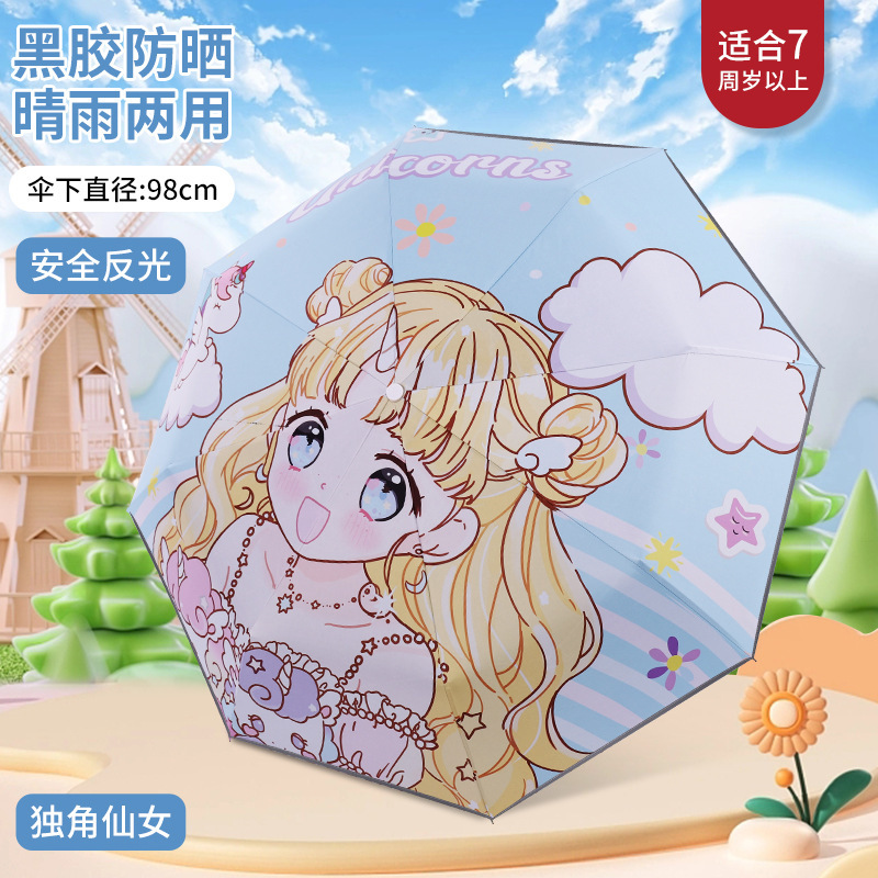 개학 시즌 학생 전용 어린이 우산, 접이식 우산, 자외선 차단 우산, 비가 오나 눈이 오나, 고급스럽고 휴대성이 뛰어난 수동식