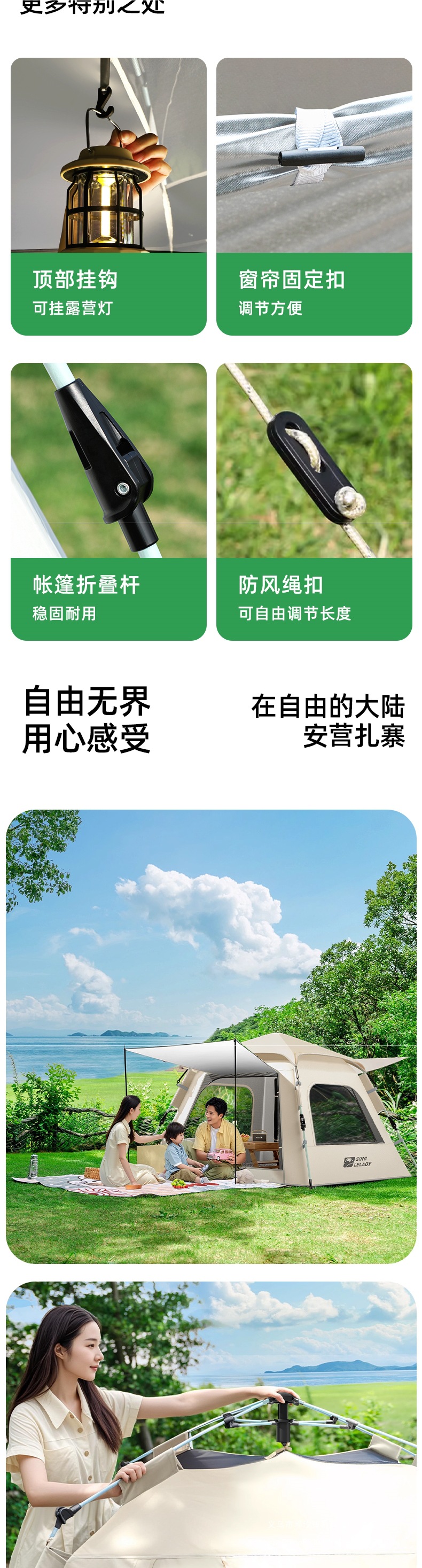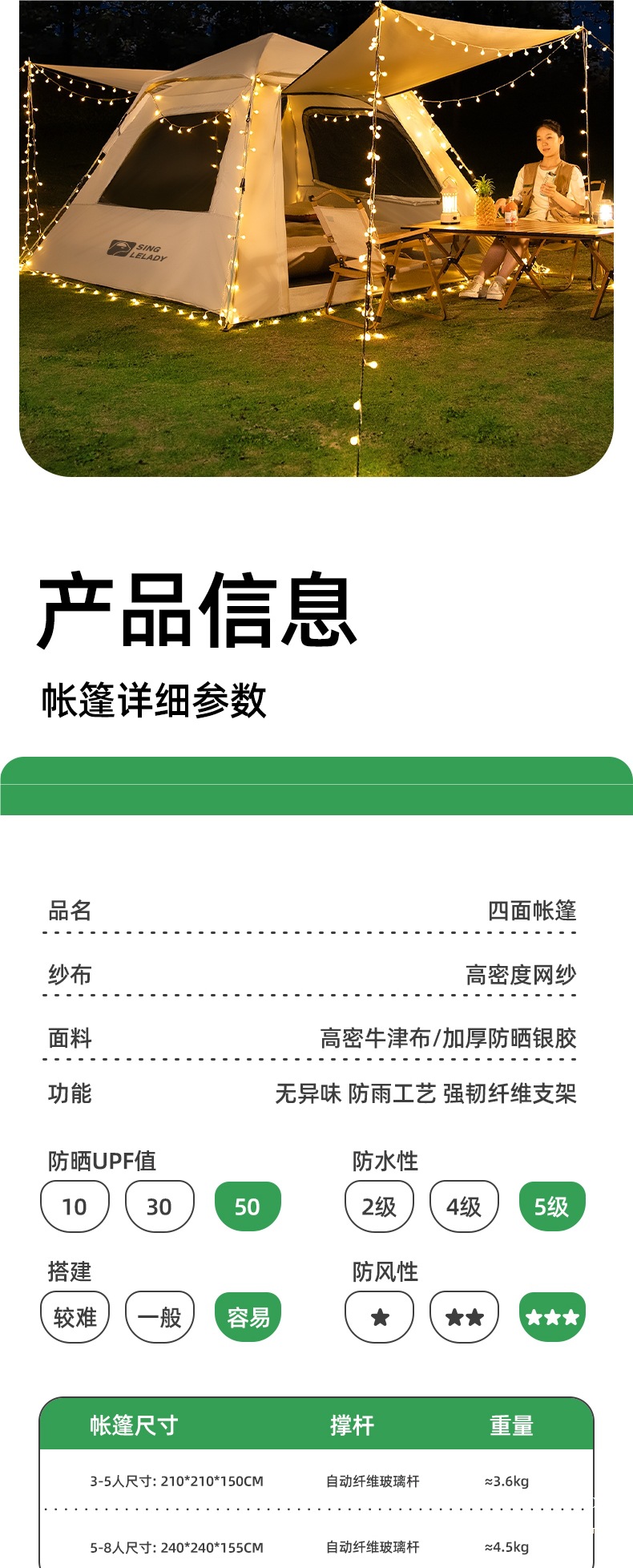 • 5~8인 [이중구역텐트] 문 2개, 창문 2개(방습매트 포함)!