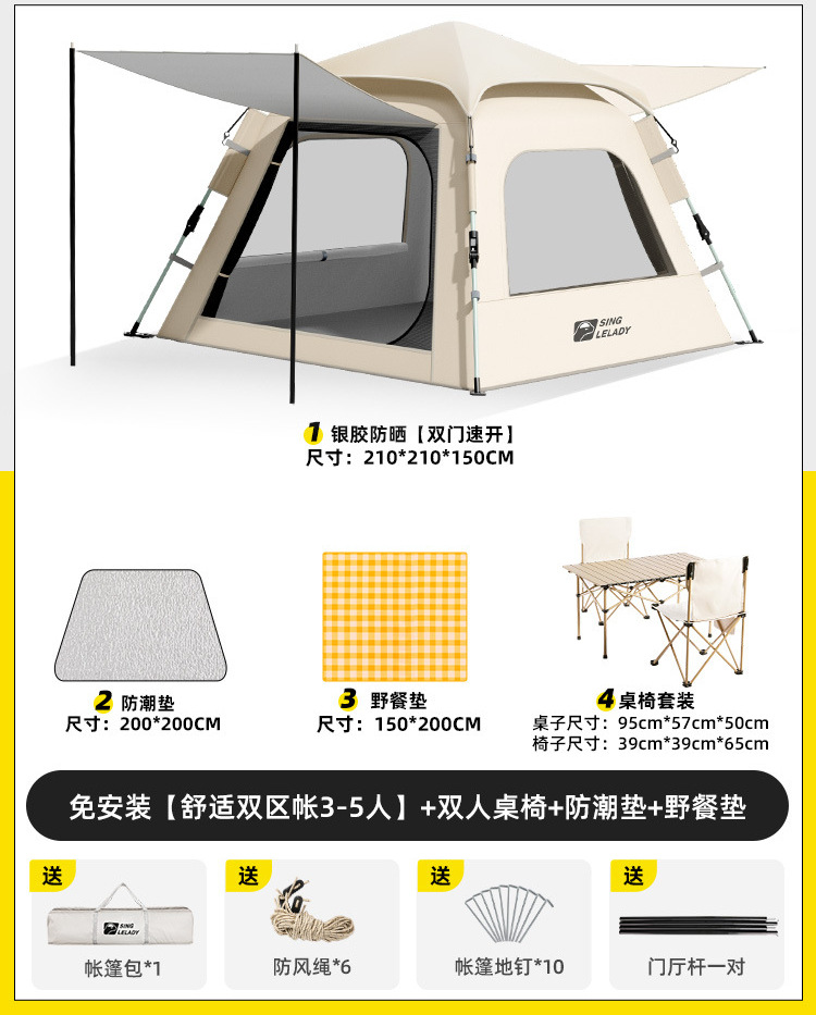 • 3~5인 [슈주 더블존텐트·설치불필요] + 더블 테이블과 의자 + 방습매트 + 피크닉매트!