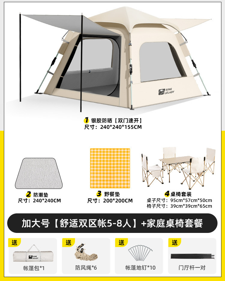 • 5~8인 [슈주 더블존텐트·특대형] + 패밀리 테이블과 의자 패키지!