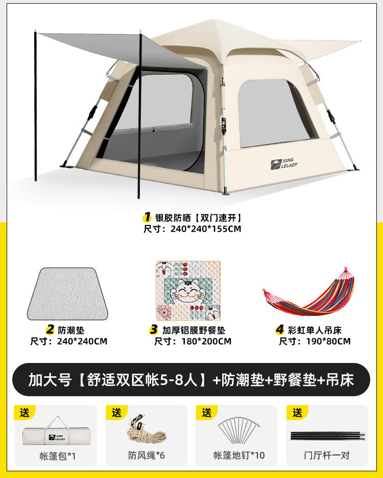 • 5~8인 [슈주 더블존텐트·특대형] + 방습매트 + 피크닉매트 + 해먹!