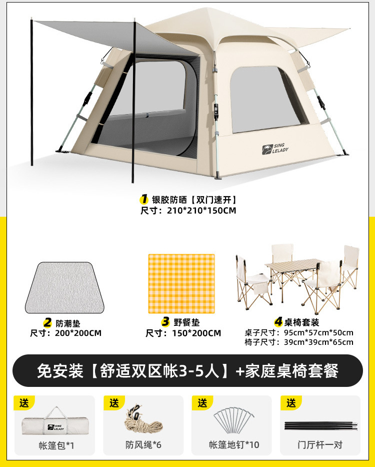 • 3~5인 [슈주 더블존텐트·설치불필요] + 패밀리 테이블과 의자 패키지!
