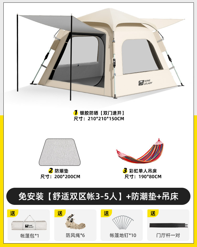 • 3~5인 [슈주 더블존텐트·설치불필요] + 방습매트 + 피크닉매트 + 해먹!