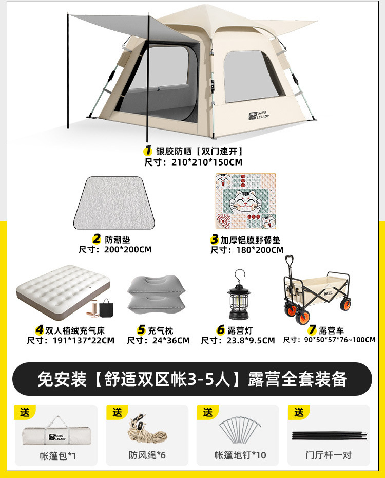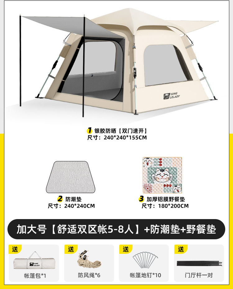 • 3~5인 [슈주 더블존텐트·설치불필요] + 방습매트 + 피크닉매트 (특대두께 7MM 고양이)!