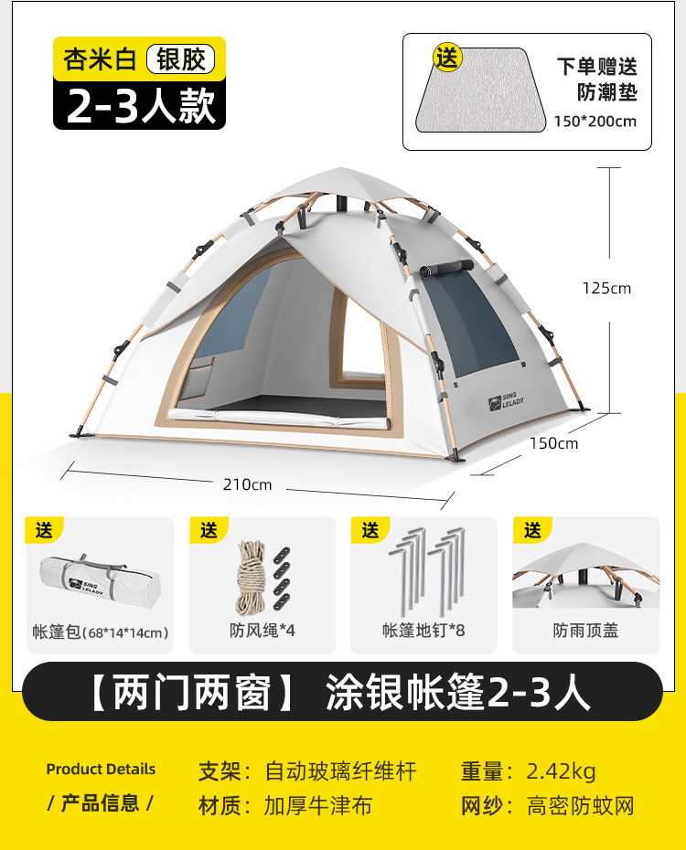 야외 캠핑용 텐트, 접이식, 휴대용, 두꺼운, 방수, 야외 캠핑 장비, 완전 자동, 빠른 개방형 실내스토어 가기
