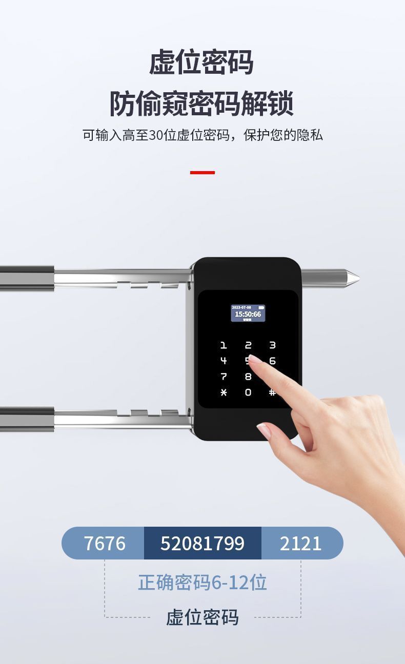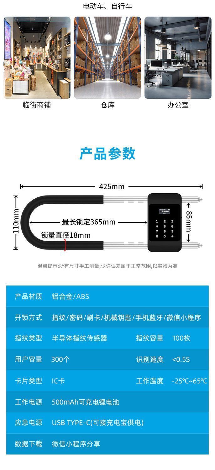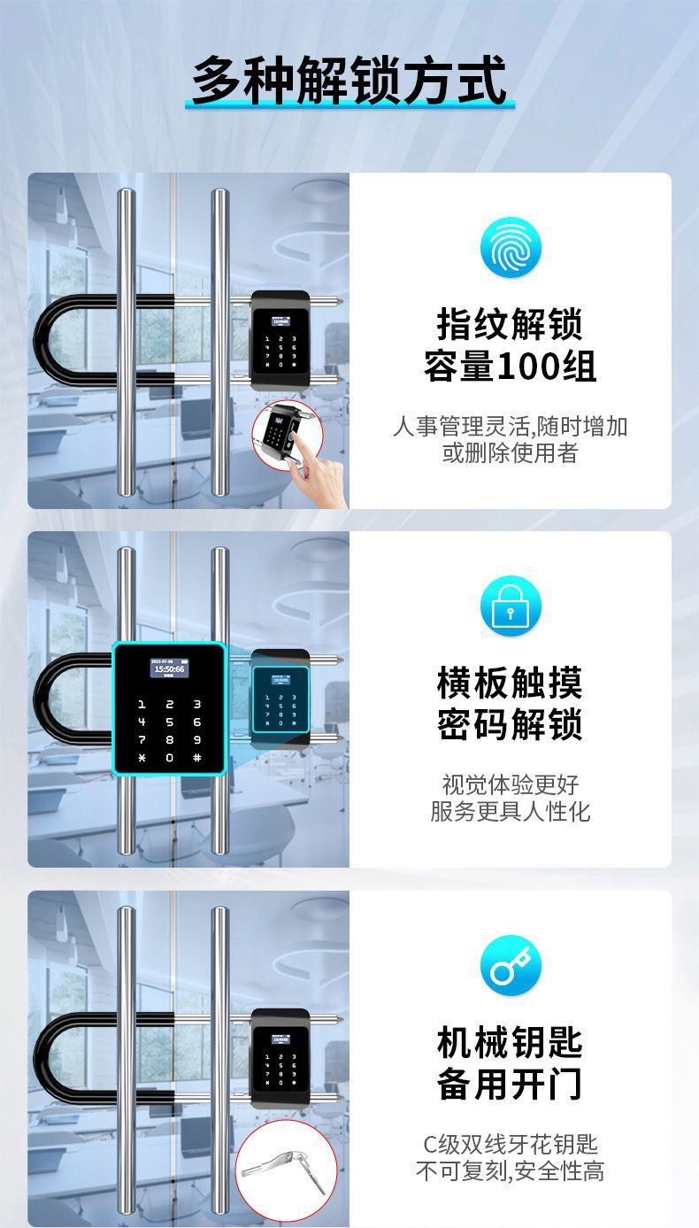검은 범선 유리 도어 지문 U 자형 잠금 장치 사무실 상점 야외 스마트 암호 전자 잠금 장치 U 자형 잠금 장치 자물쇠스토어 가기