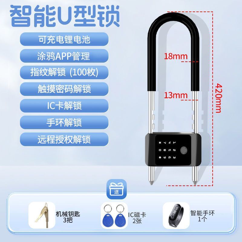 검은 범선 유리 도어 지문 U 자형 잠금 장치 사무실 상점 야외 스마트 암호 전자 잠금 장치 U 자형 잠금 장치 자물쇠