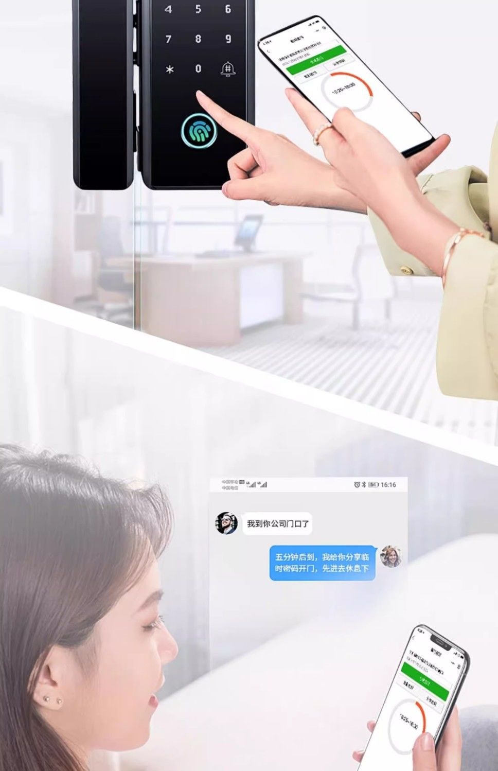 Bangchen 유리 도어 암호 잠금 사무실 전자 잠금 스마트 도어 잠금 이중 도어 이중 개방 회사 상점 지문 도어 잠금
