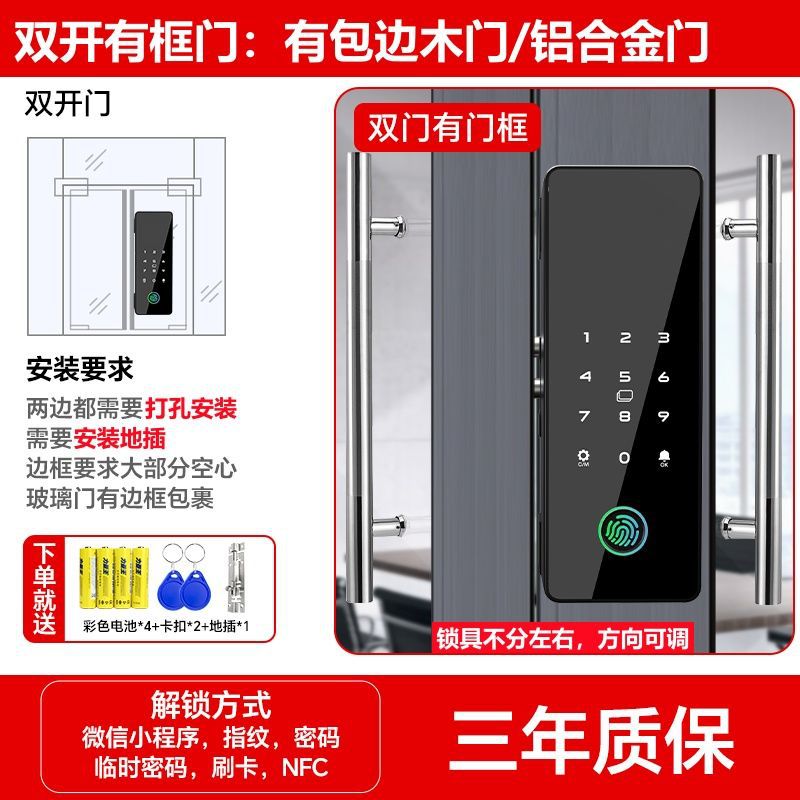 Bangchen 유리 도어 암호 잠금 사무실 전자 잠금 스마트 도어 잠금 이중 도어 이중 개방 회사 상점 지문 도어 잠금스토어 가기