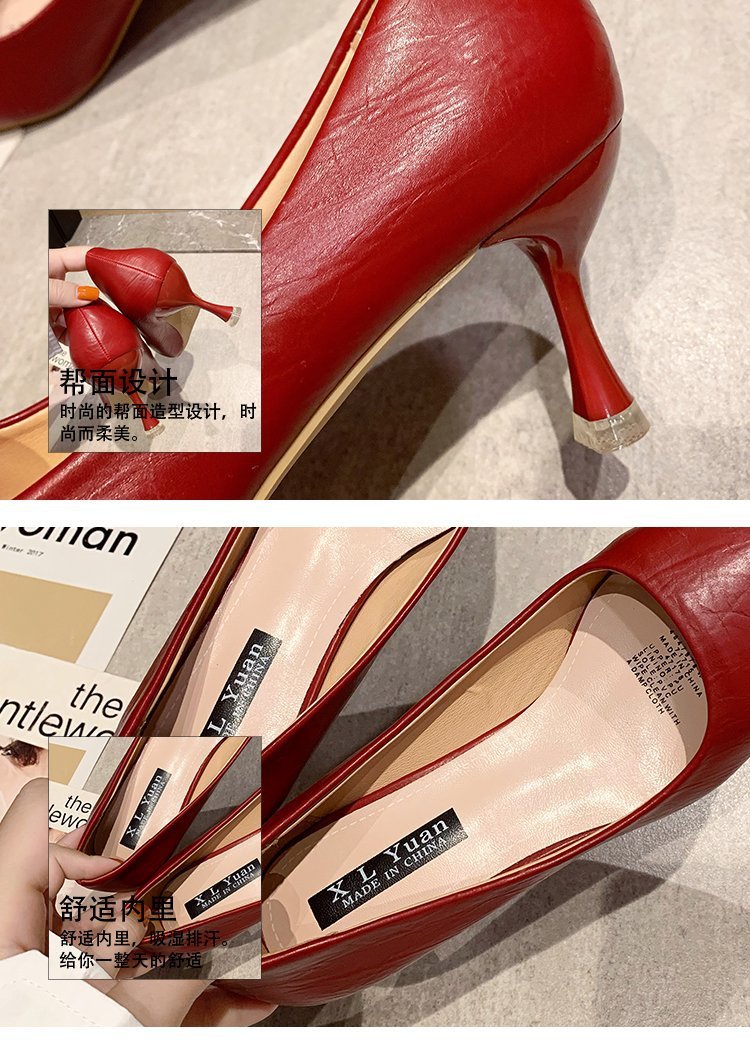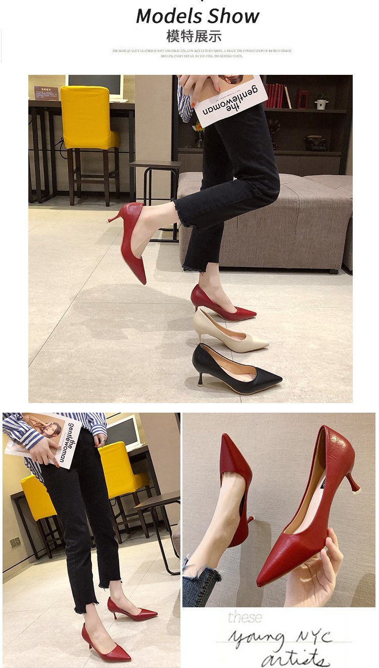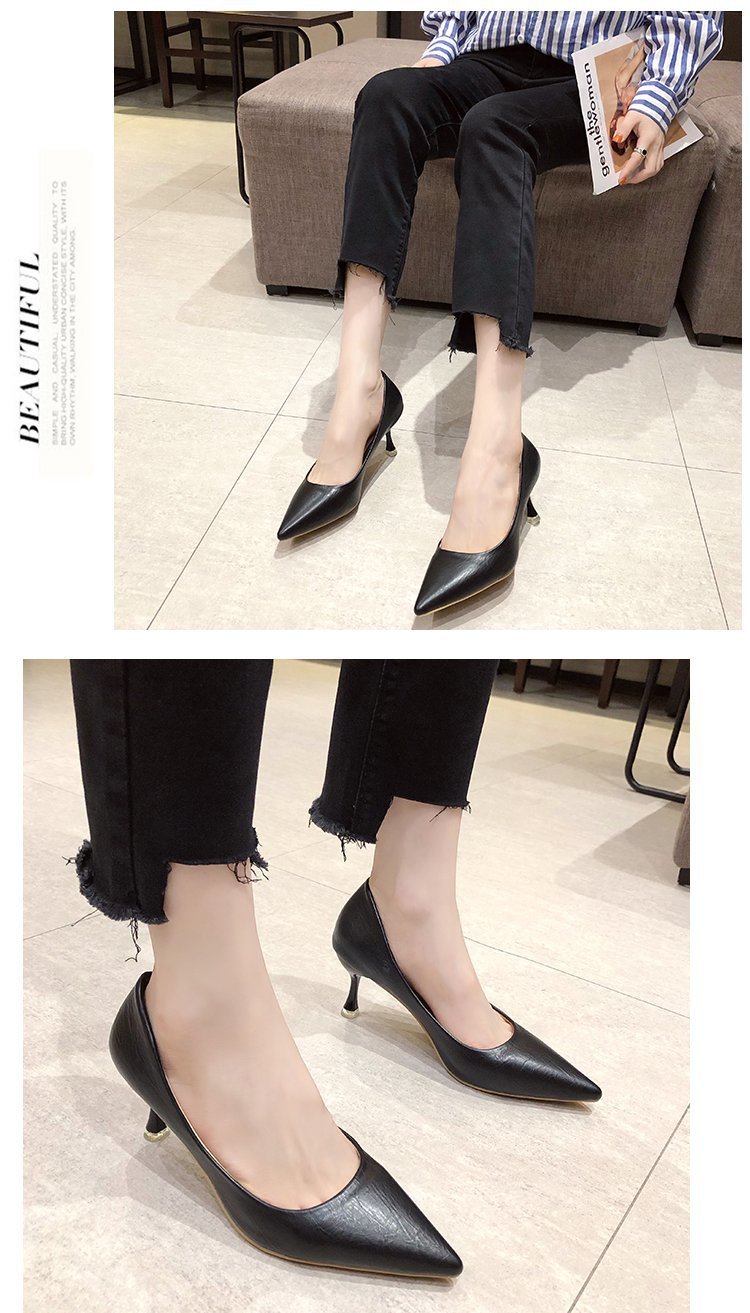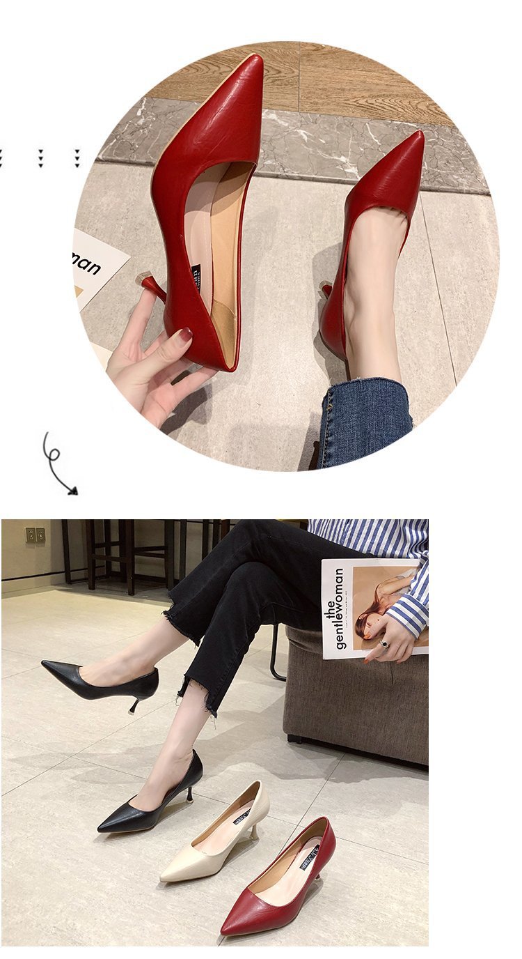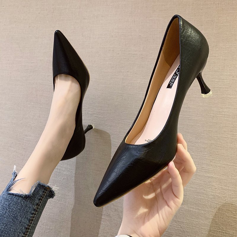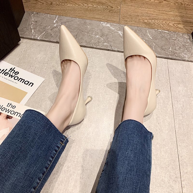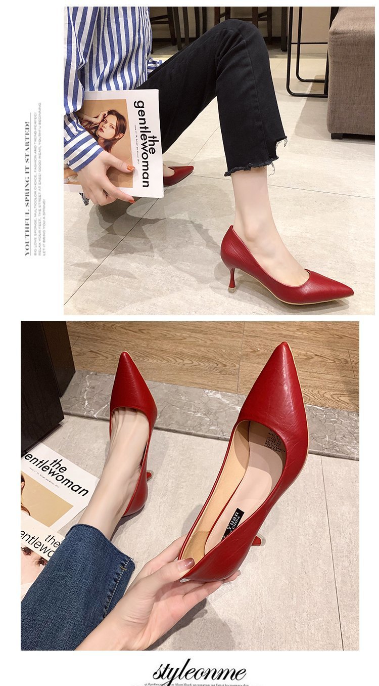 2025년 봄 여성용 하이힐 새로운 패션 스틸레토 힐 포인티드 토 전문 인터넷 연예인 신발 부드러운 가죽 다용도 작업 신발스토어 가기