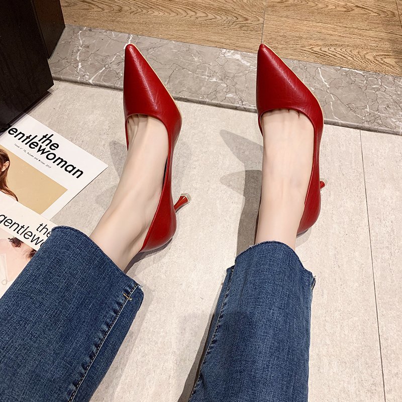 2025년 봄 여성용 하이힐 새로운 패션 스틸레토 힐 포인티드 토 전문 인터넷 연예인 신발 부드러운 가죽 다용도 작업 신발