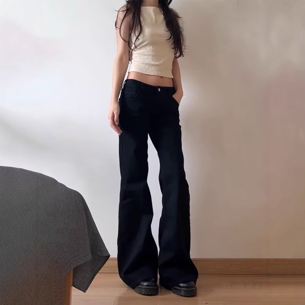여성용 블랙 마이크로 플레어 청바지 2025 여름 신작 하이 스트리트 로우 웨이스트 작은 사람들의 다리에 꼭 맞는 말굽 바닥 바지스토어 가기