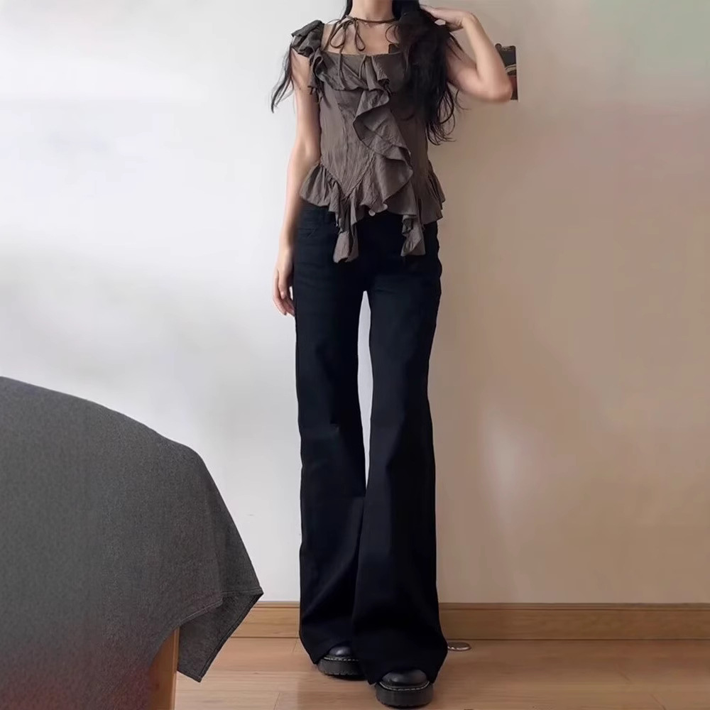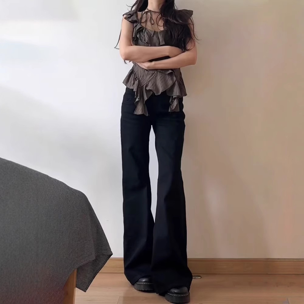 여성용 블랙 마이크로 플레어 청바지 2025 여름 신작 하이 스트리트 로우 웨이스트 작은 사람들의 다리에 꼭 맞는 말굽 바닥 바지