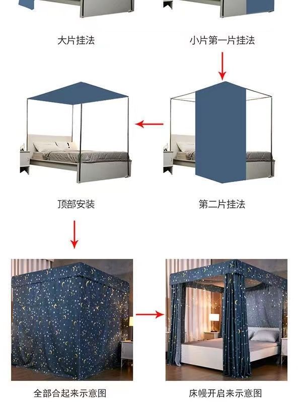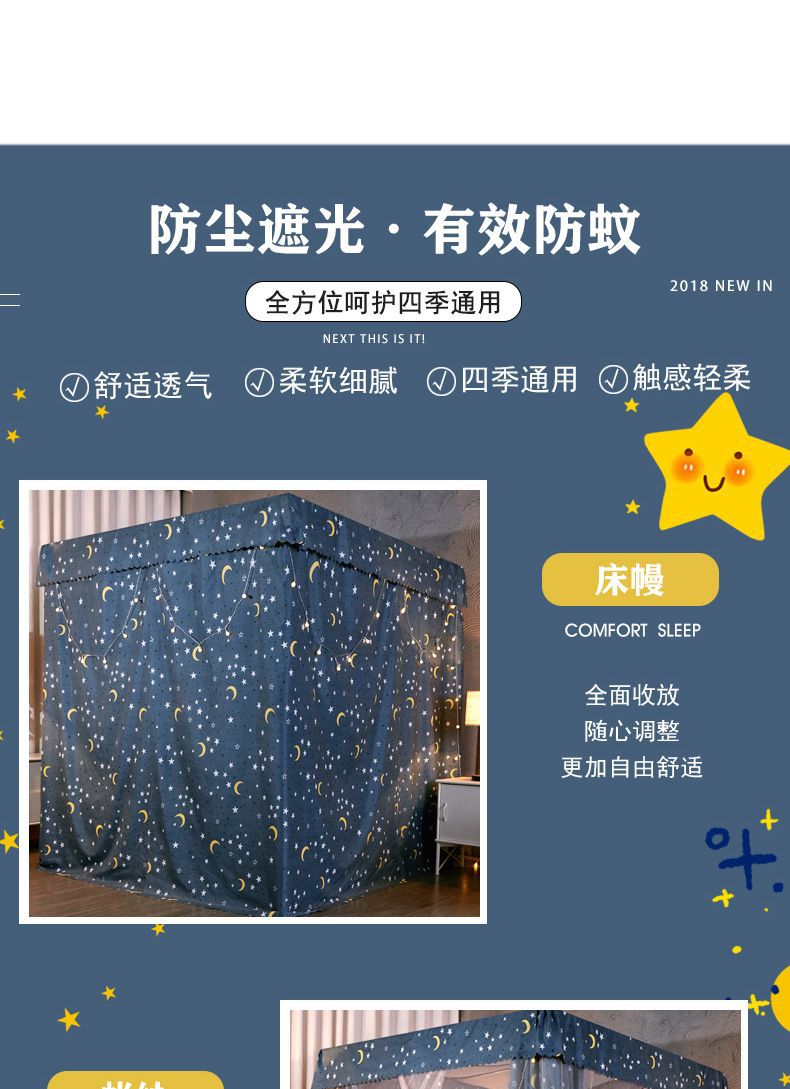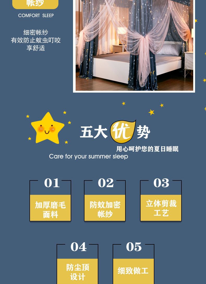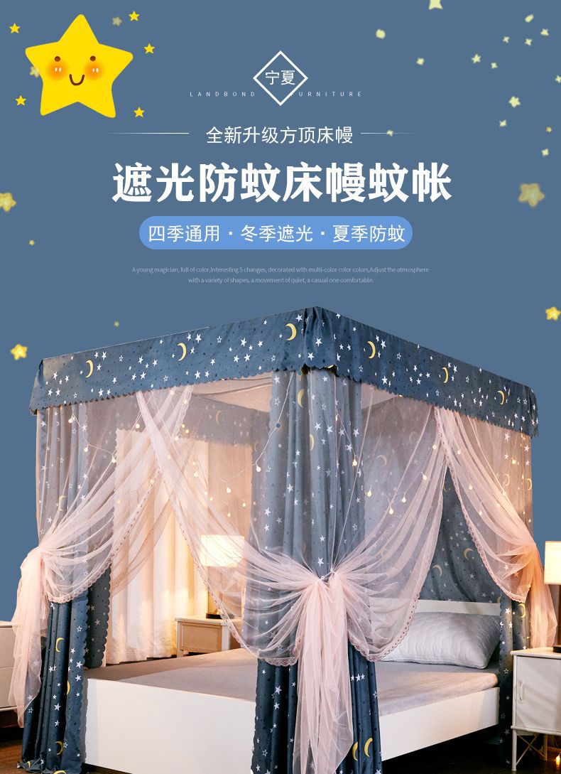 차광 궁전 모기장 침대 커튼 공주 스타일 밀폐형 일체형 방진 플로어 스탠딩 더블 침대 홈 1.8m스토어 가기