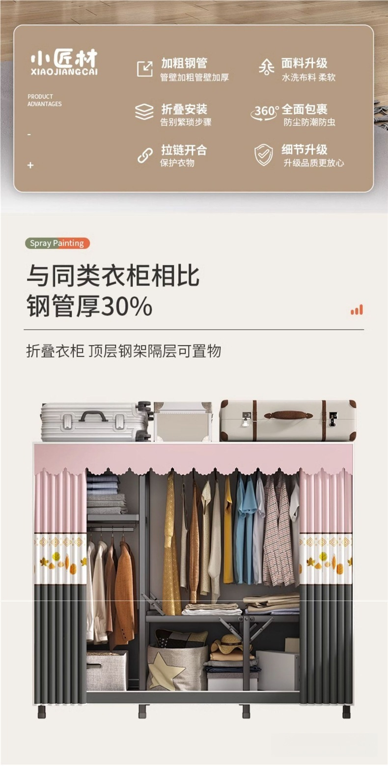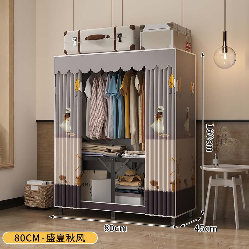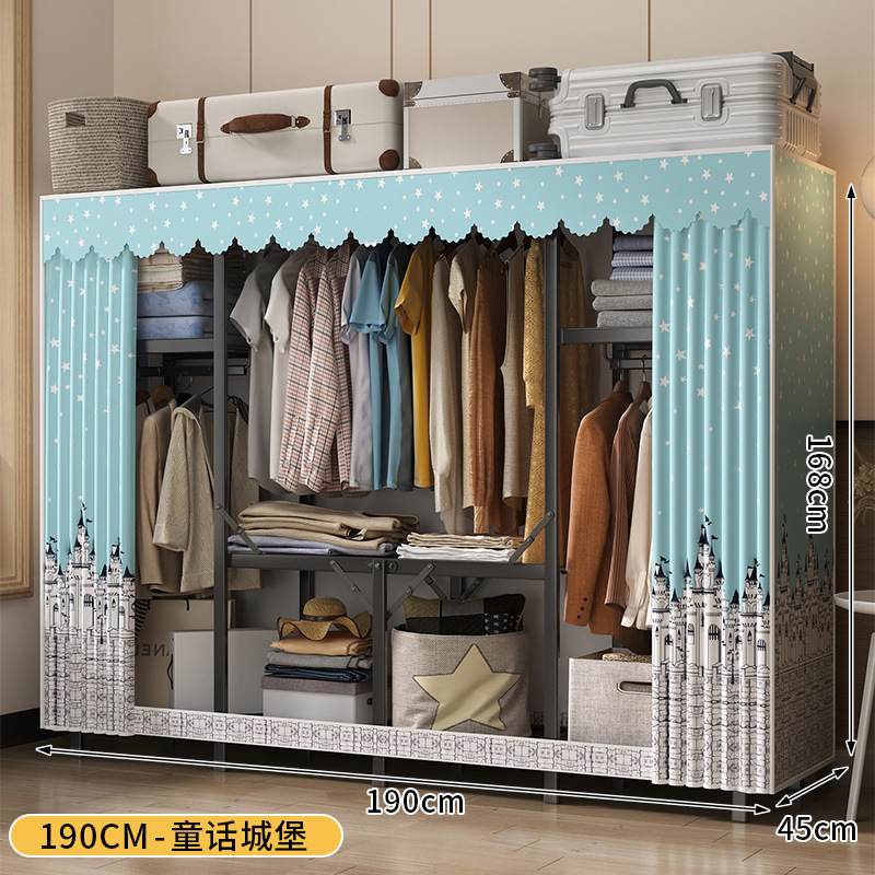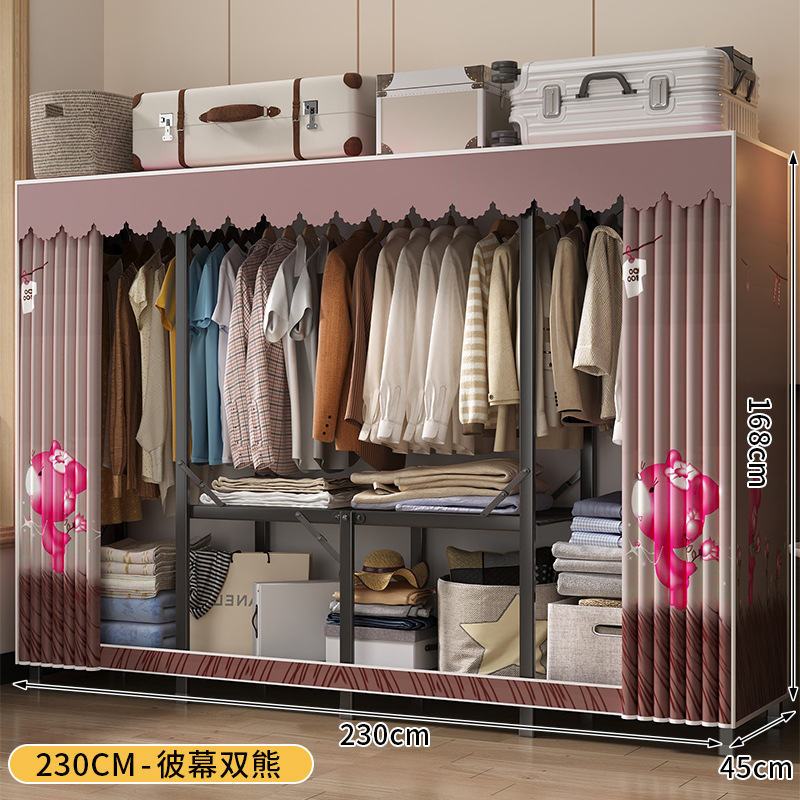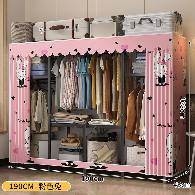 강철 프레임 간단한 옷장 가정용 임대 접이식 침실 내구성 설치가 필요없는 전체 천 옷장 작은 아파트스토어 가기