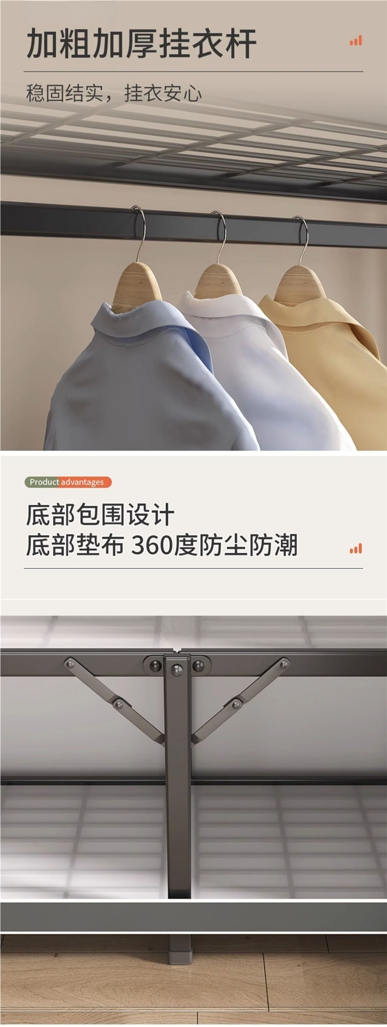 강철 프레임 간단한 옷장 가정용 임대 접이식 침실 내구성 설치가 필요없는 전체 천 옷장 작은 아파트