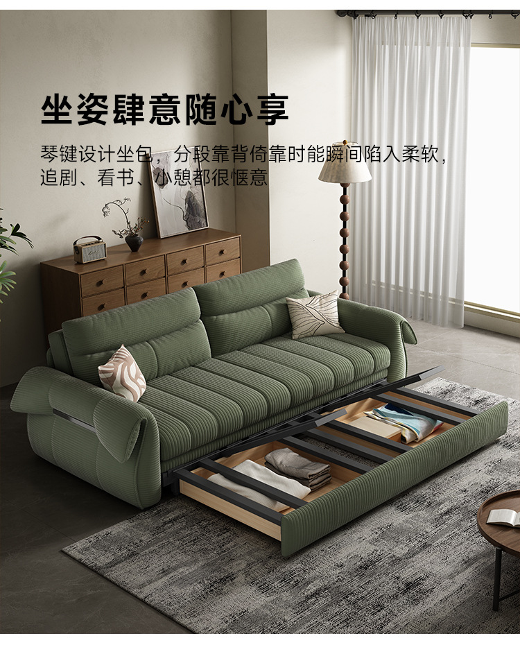 코듀로이 소파 베드 이중 목적 거실 다기능 소형 아파트 더블 접이식 복고풍 녹색 소파 투인원스토어 가기