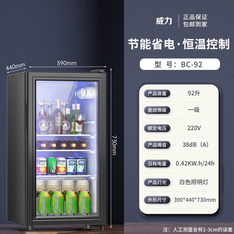 Weili Ice Bar 가정용 소형 냉장 보존 캐비닛 사무실 대용량 차 음료 레드 와인 투명 냉장고스토어 가기