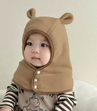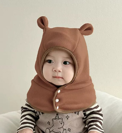 • 단색 곰돌이 귀 일체형 모자 - 커피