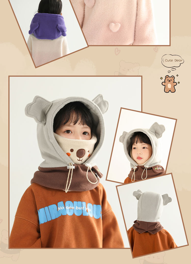 어린이 발라클라바 가을, 겨울 소년과 소녀의 스카프 일체형 모자 귀 보호 방풍 따뜻한 목 커버 유행 풀오버 모자스토어 가기