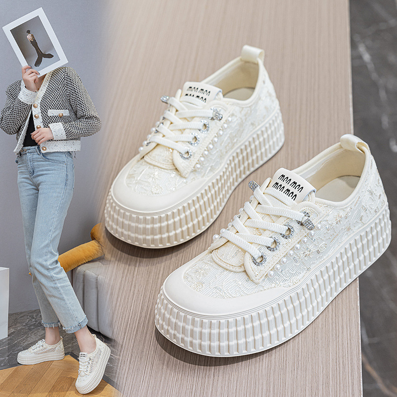 플러스 사이즈 여성 신발 41-43 흰색 신발 여성 메쉬 통기성 2025 여름 새로운 레이스 두꺼운 밑창 캐주얼 어부 신발스토어 가기