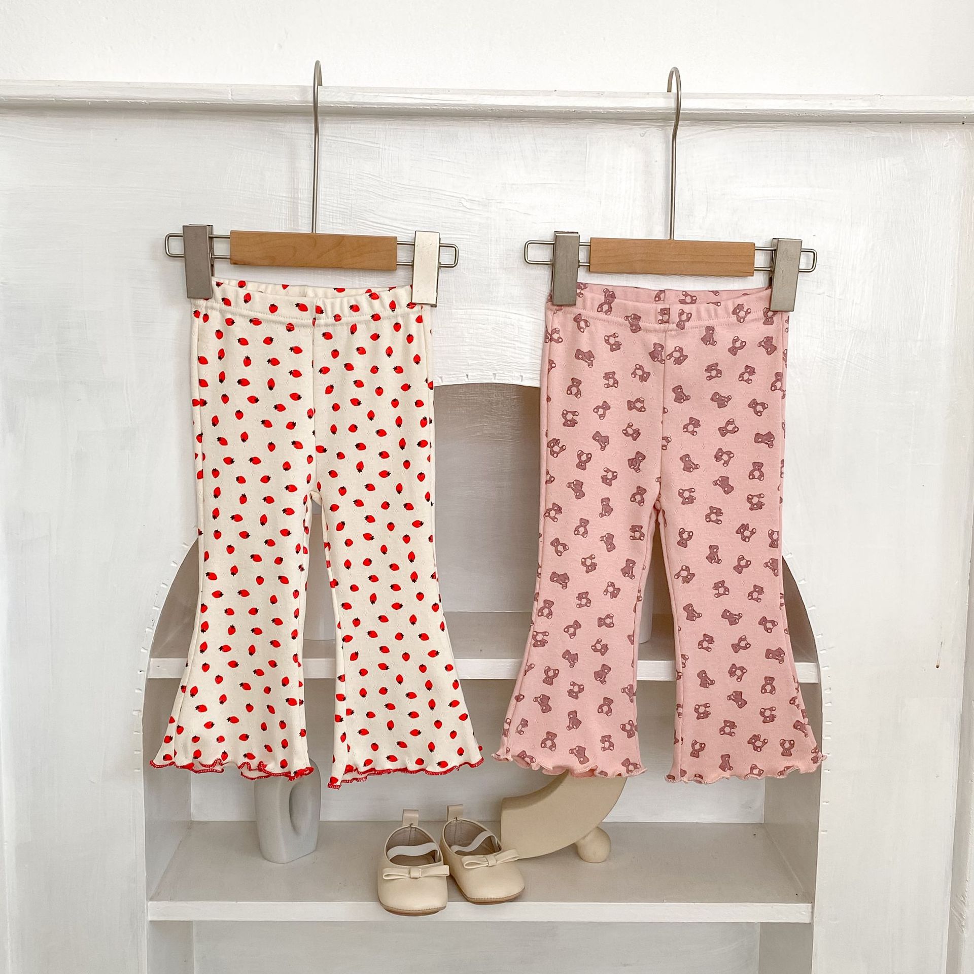 2025 새로운 한국어 스타일 가을 아기 소녀 꽃 마이크로 플레어 인쇄 아기 레깅스 아기 모기 방지 바지스토어 가기