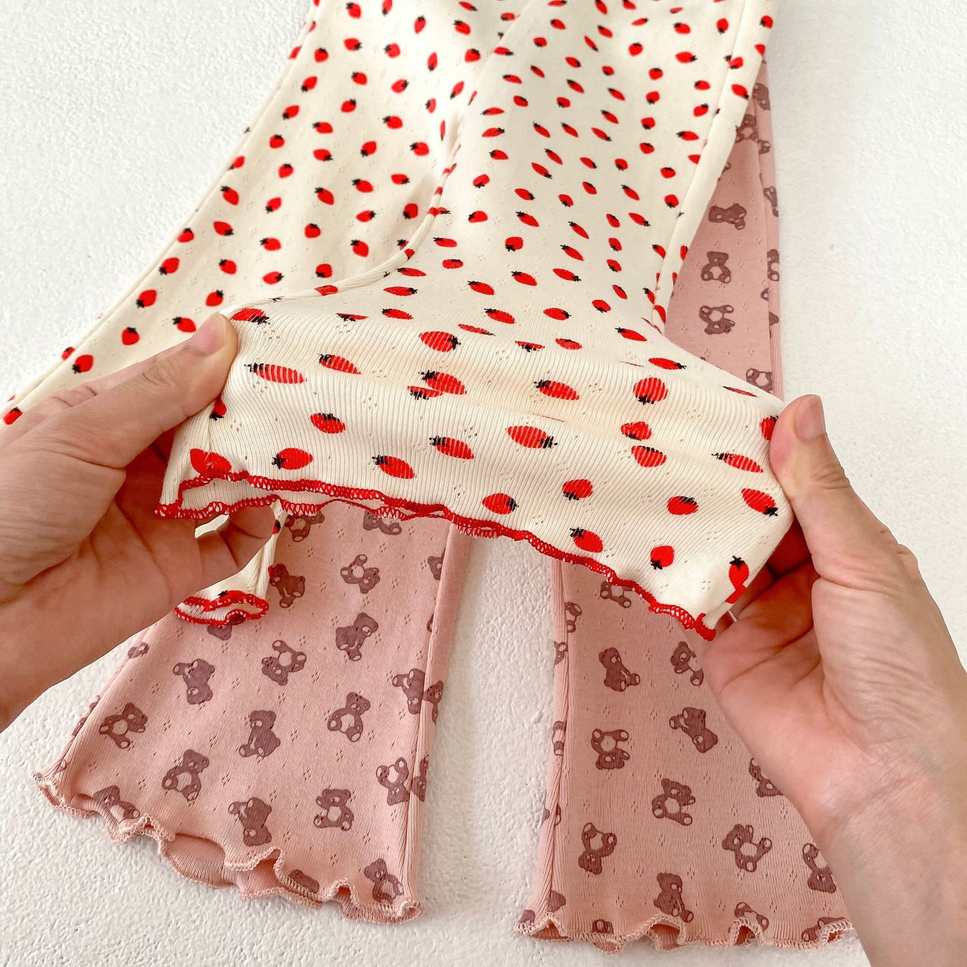 2025 새로운 한국어 스타일 가을 아기 소녀 꽃 마이크로 플레어 인쇄 아기 레깅스 아기 모기 방지 바지
