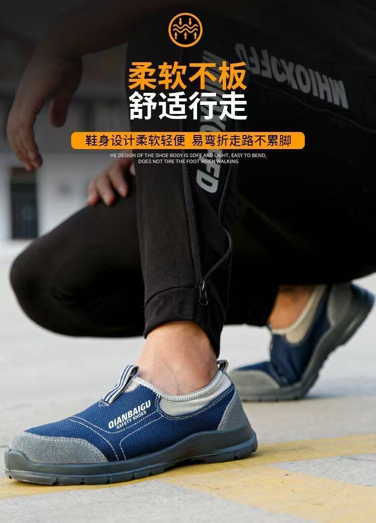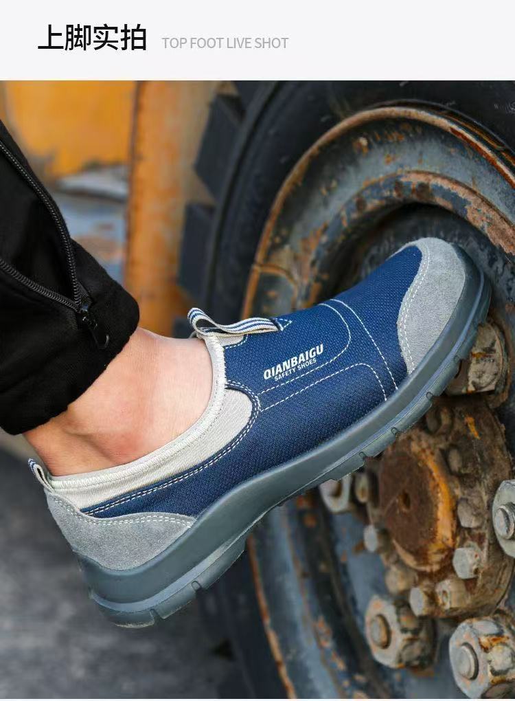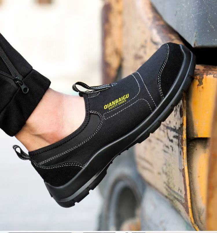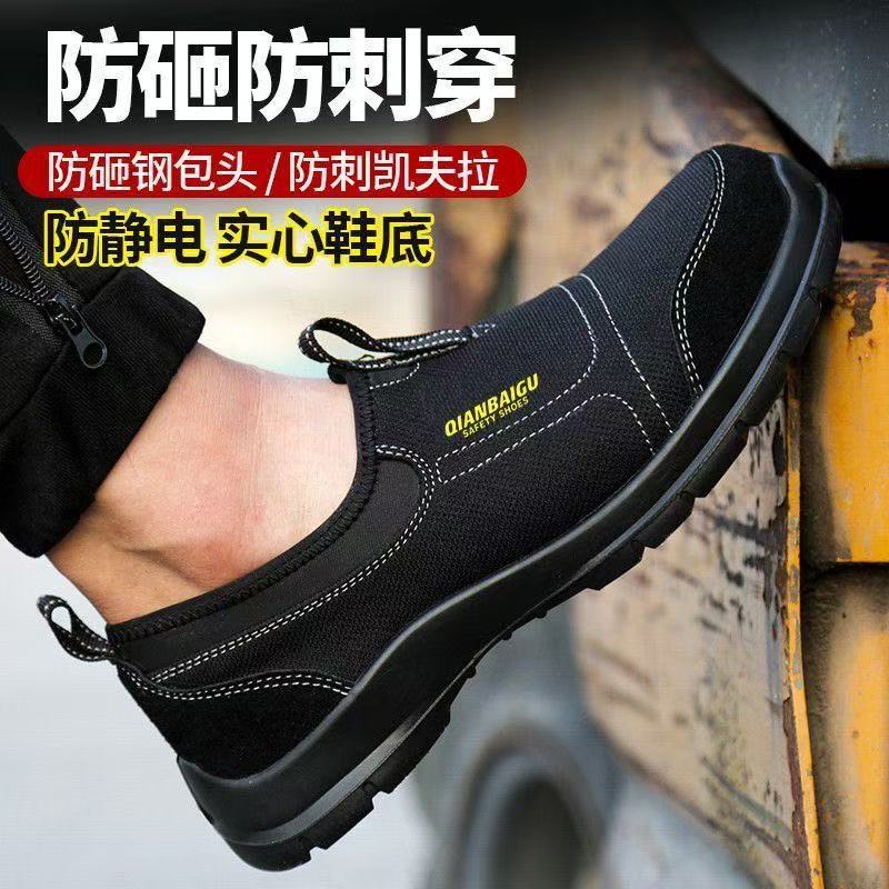 남성용 국경 간 노동 보호 신발, 플라이 우븐 정전기 방지, 충격 방지 및 펑크 방지 노동 보호 신발, 작업 신발, 통기성, 경량 및 미끄럼 방지 신발스토어 가기