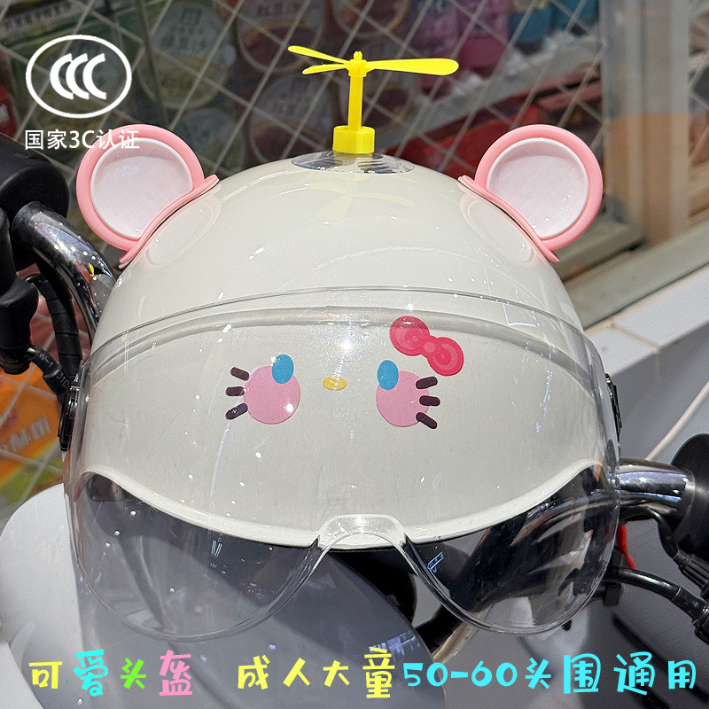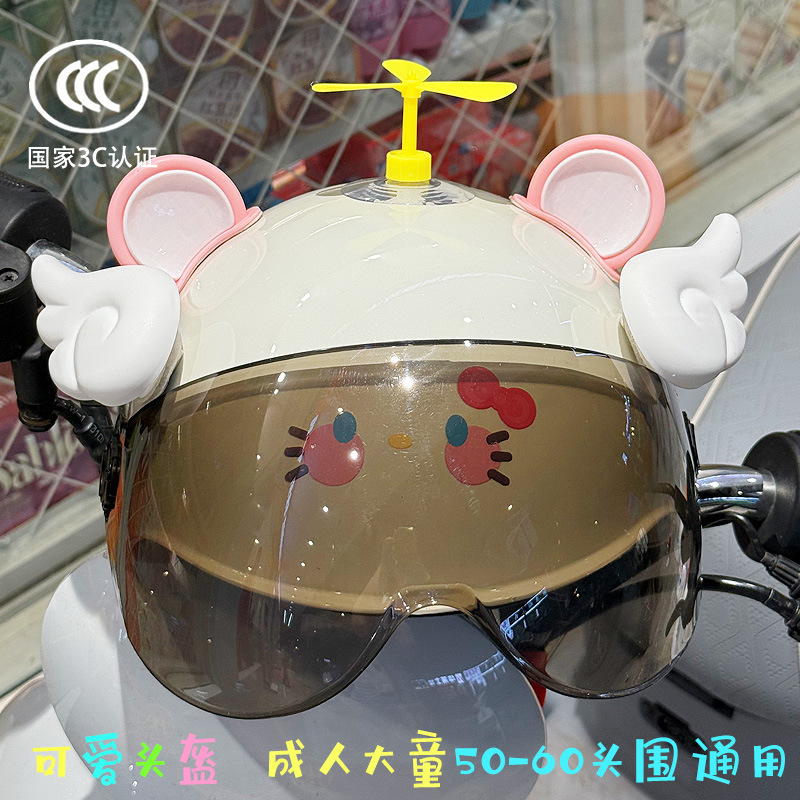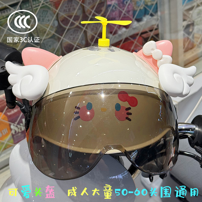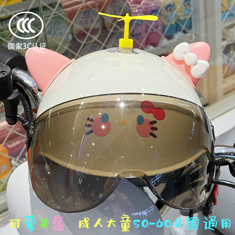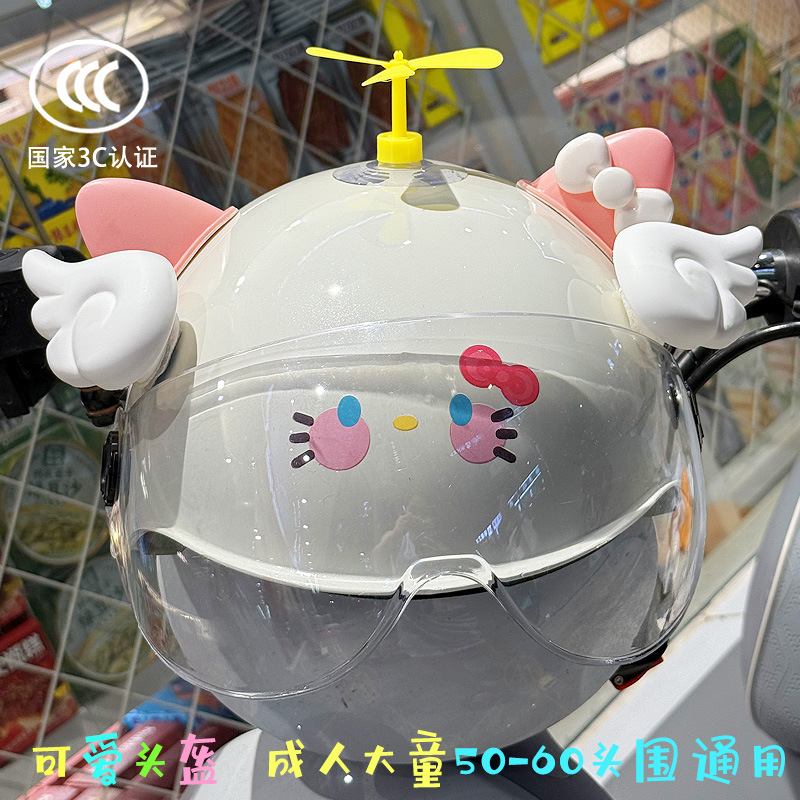 3C 인증 전기 배터리 자전거 헬멧 여름 자외선 차단 귀여운 KT 고양이 반 헬멧 커플 오토바이 헬멧스토어 가기