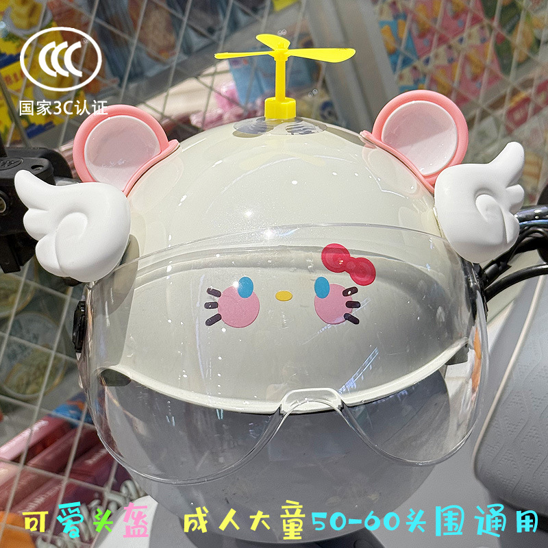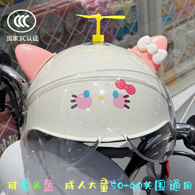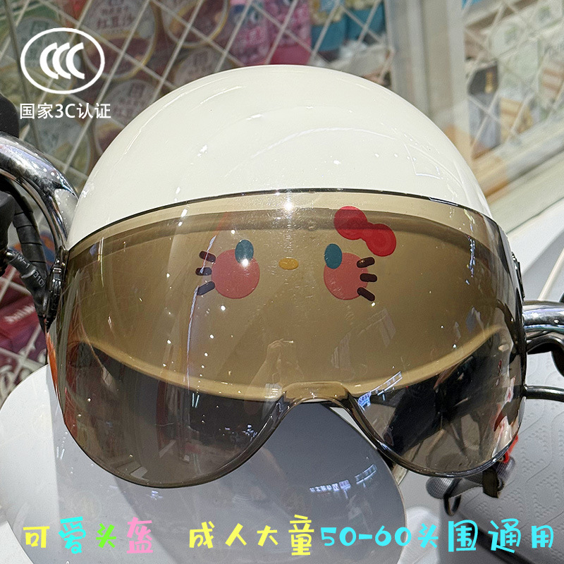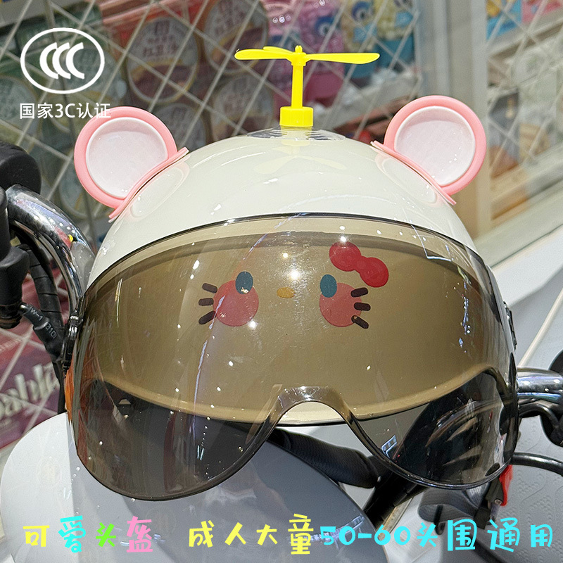 3C 인증 전기 배터리 자전거 헬멧 여름 자외선 차단 귀여운 KT 고양이 반 헬멧 커플 오토바이 헬멧