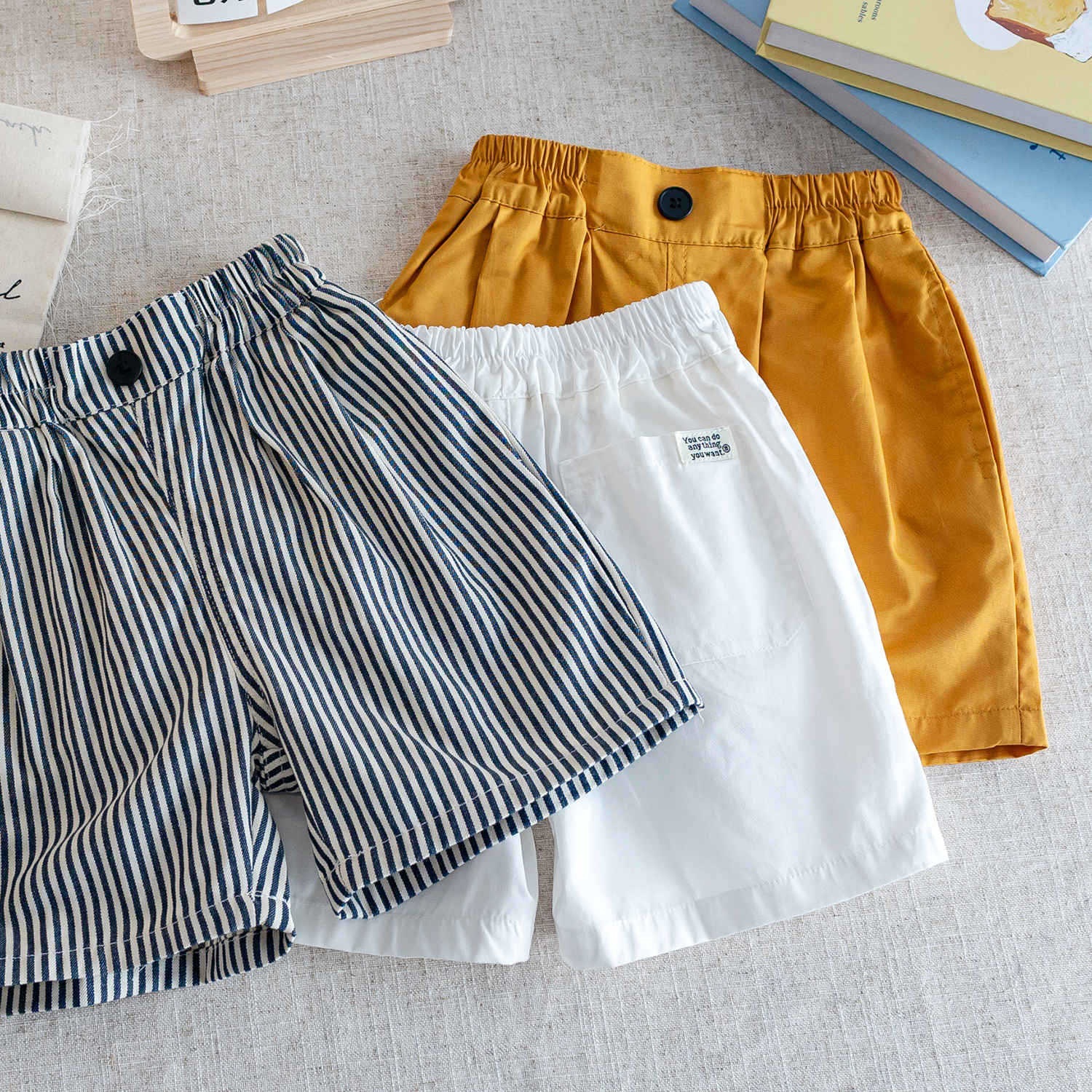 아동용 클래스 A 반바지 2025 여름 신제품 소년 소녀 솔리드 컬러 순면 베이비 심플 스트라이프 대외 무역 도매스토어 가기