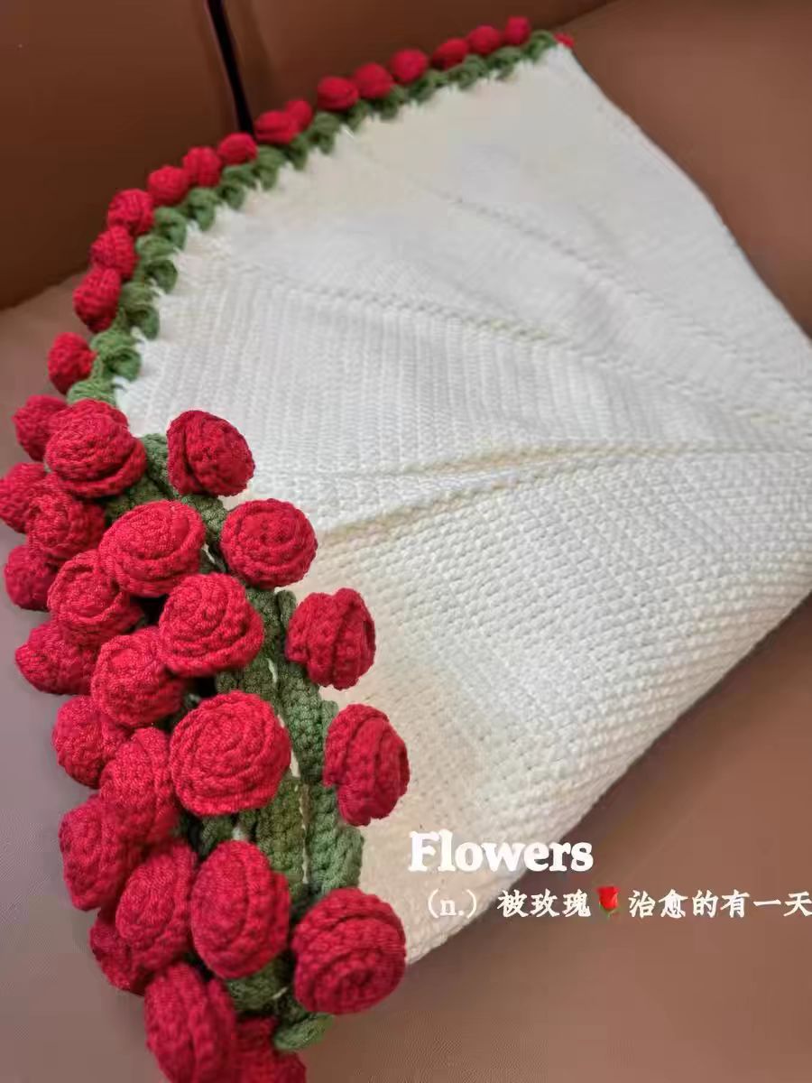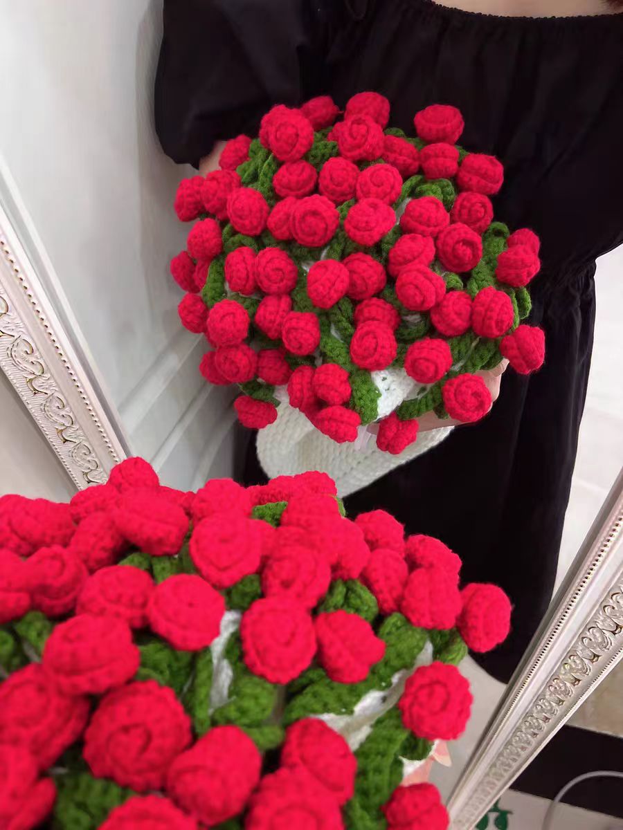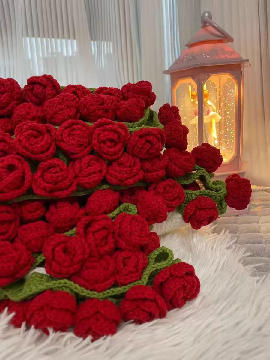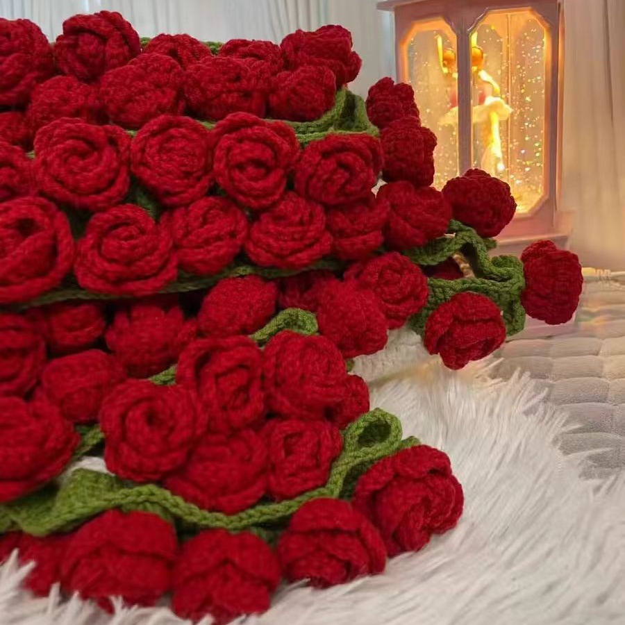 520 여자친구를 위한 발렌타인데이 선물, 장미꽃다발, 담요, 완성된 울볼, 손으로 뜨개질한 꽃담요, 완성품스토어 가기