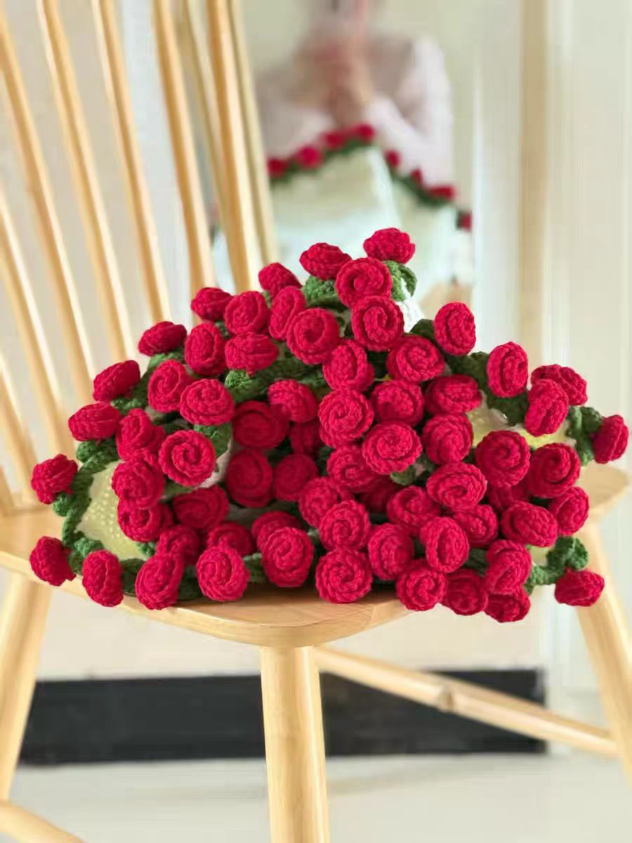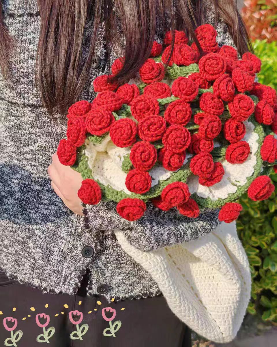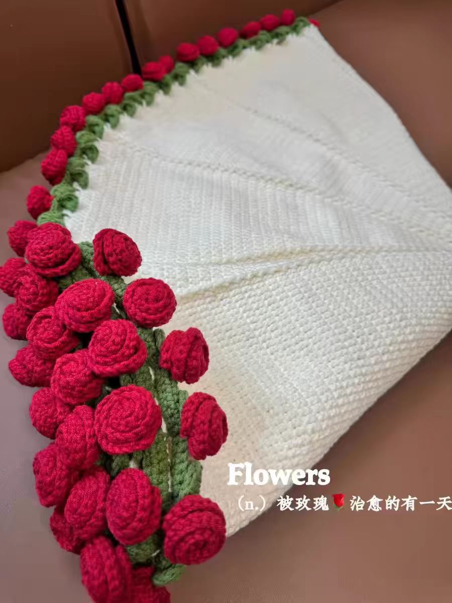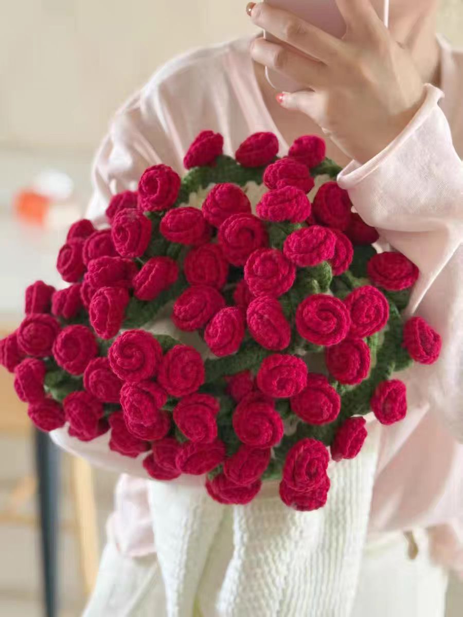 520 여자친구를 위한 발렌타인데이 선물, 장미꽃다발, 담요, 완성된 울볼, 손으로 뜨개질한 꽃담요, 완성품스토어 가기