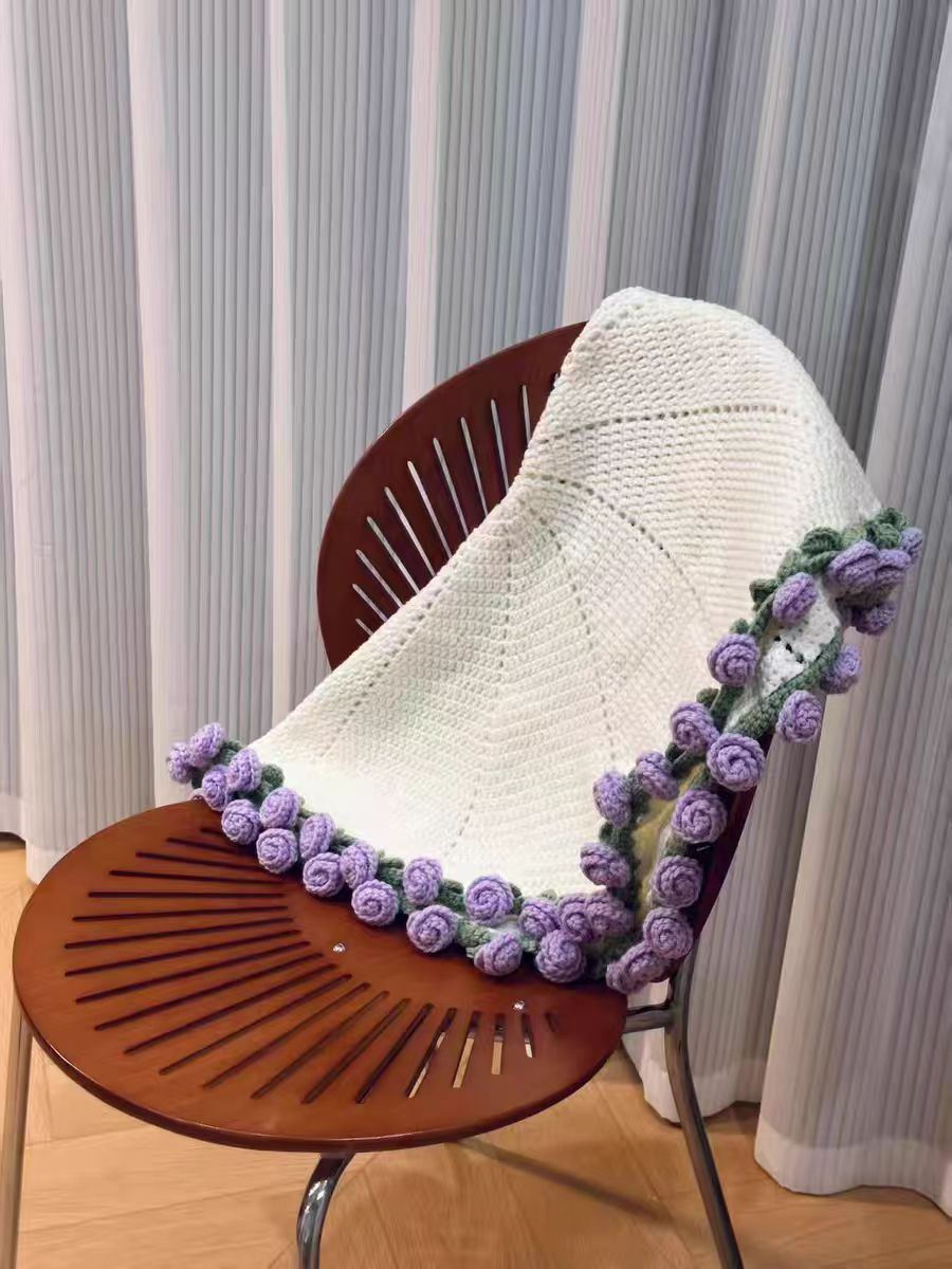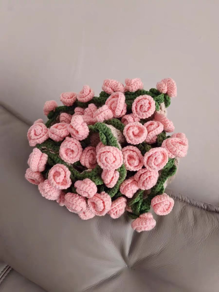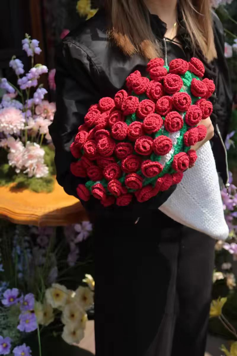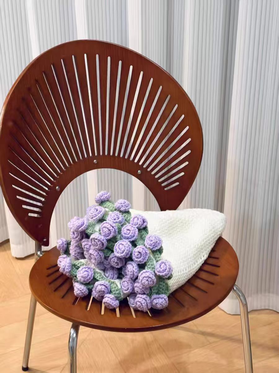 520 여자친구를 위한 발렌타인데이 선물, 장미꽃다발, 담요, 완성된 울볼, 손으로 뜨개질한 꽃담요, 완성품스토어 가기