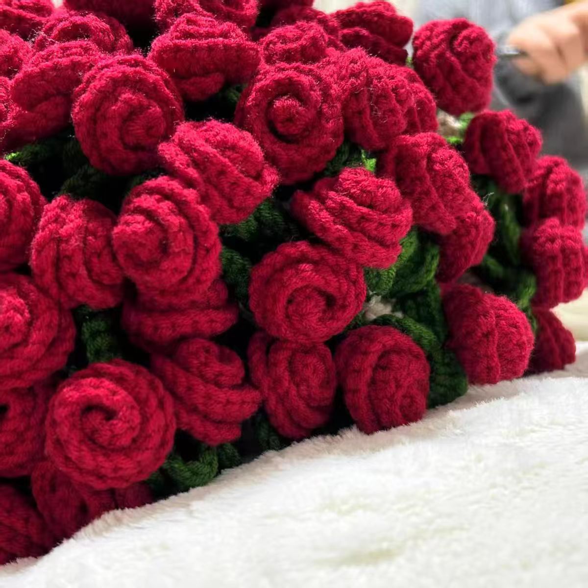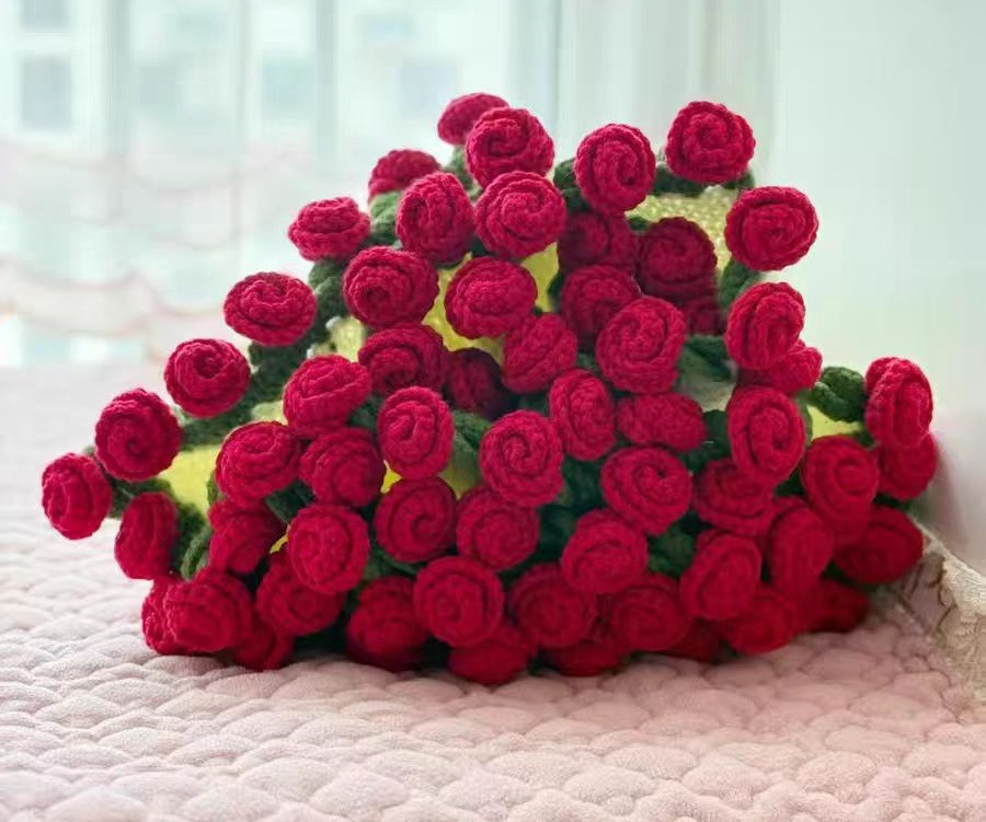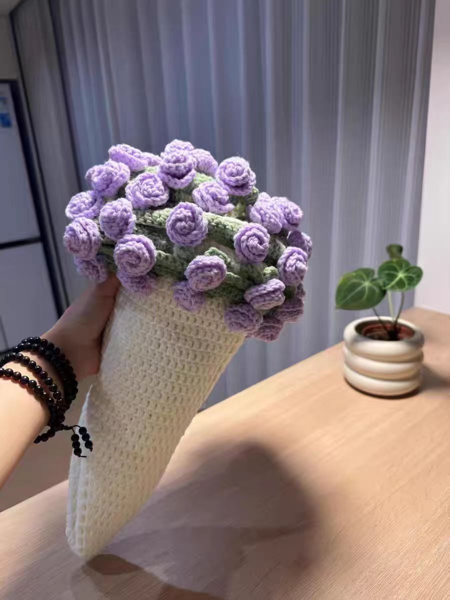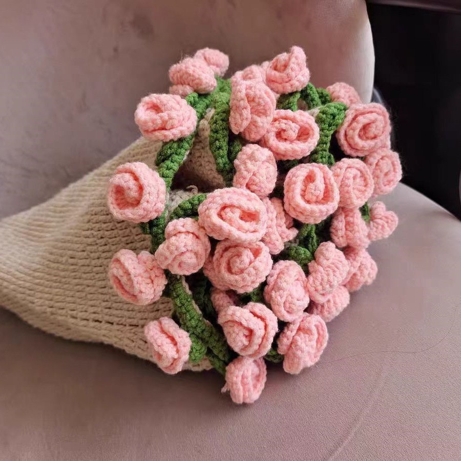 520 여자친구를 위한 발렌타인데이 선물, 장미꽃다발, 담요, 완성된 울볼, 손으로 뜨개질한 꽃담요, 완성품
