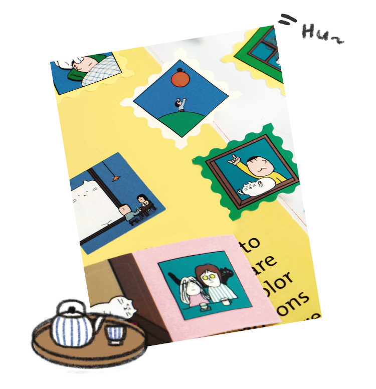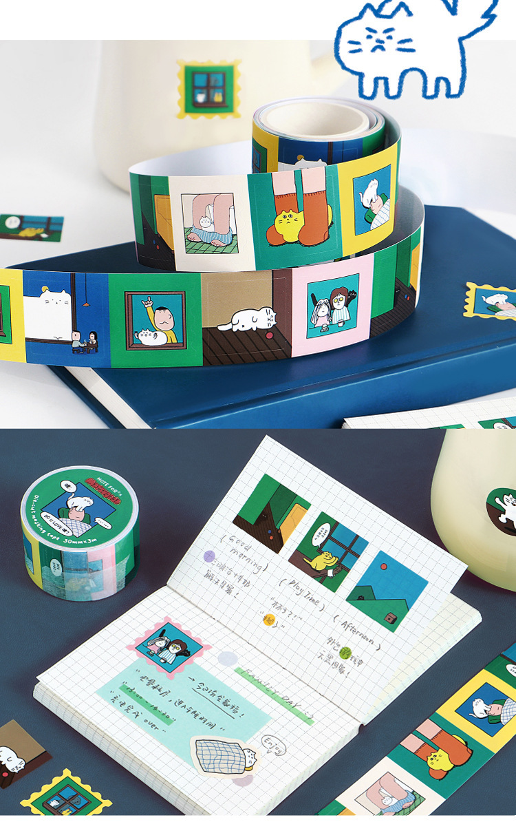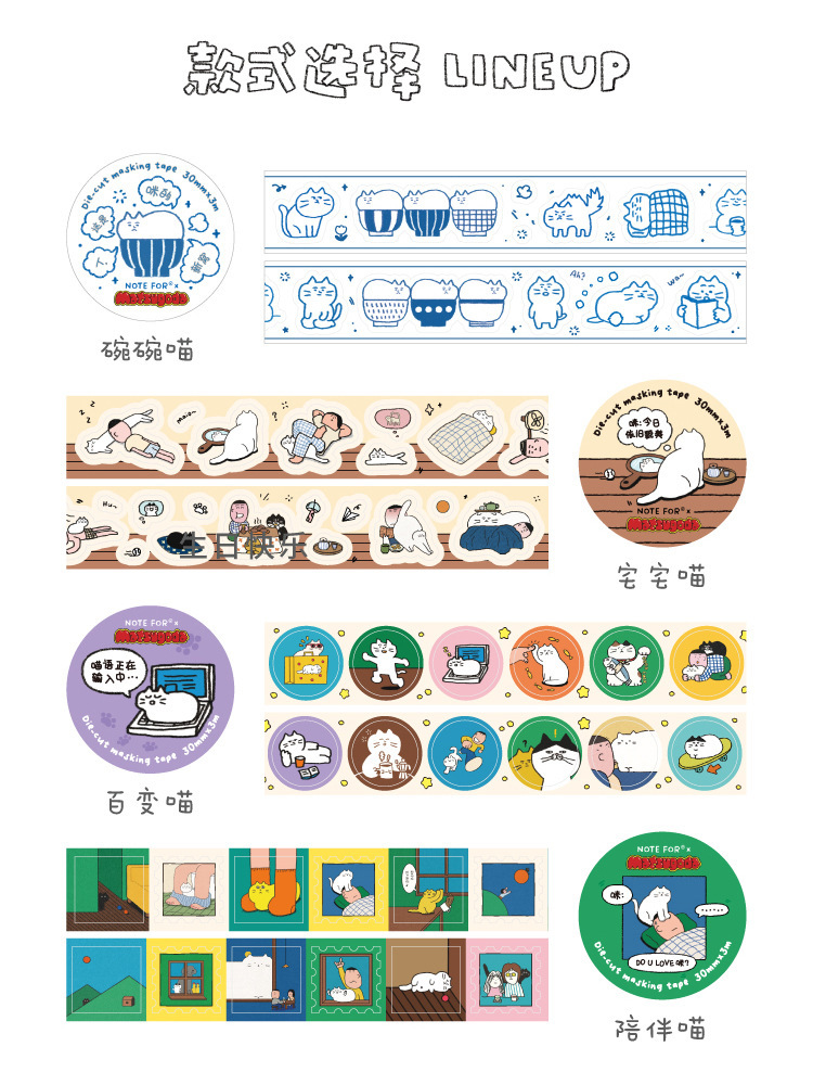 NOTE FOR×MATSUGODA 공동 브랜드 다이컷 테이프 크리에이티브 고양이 일러스트 핸드북 장식 콜라주 소재스토어 가기