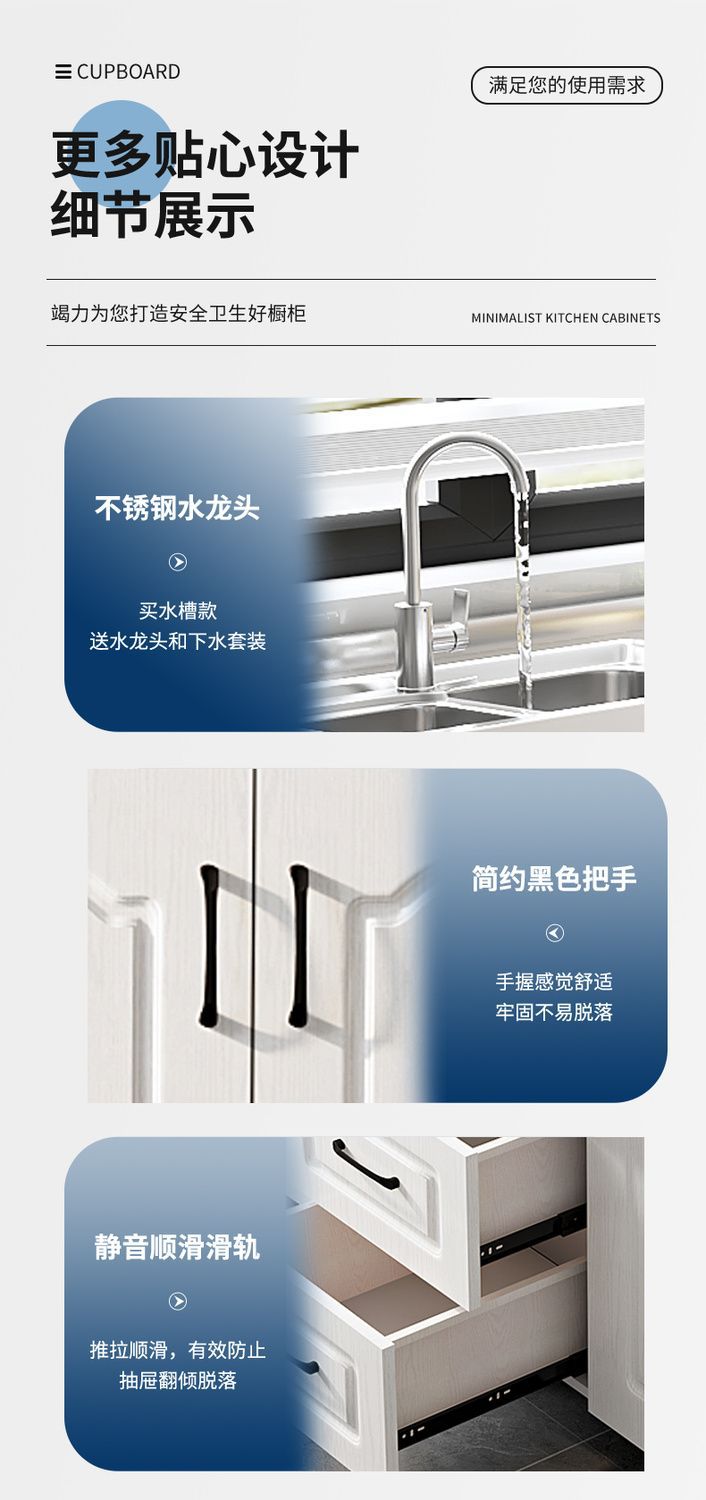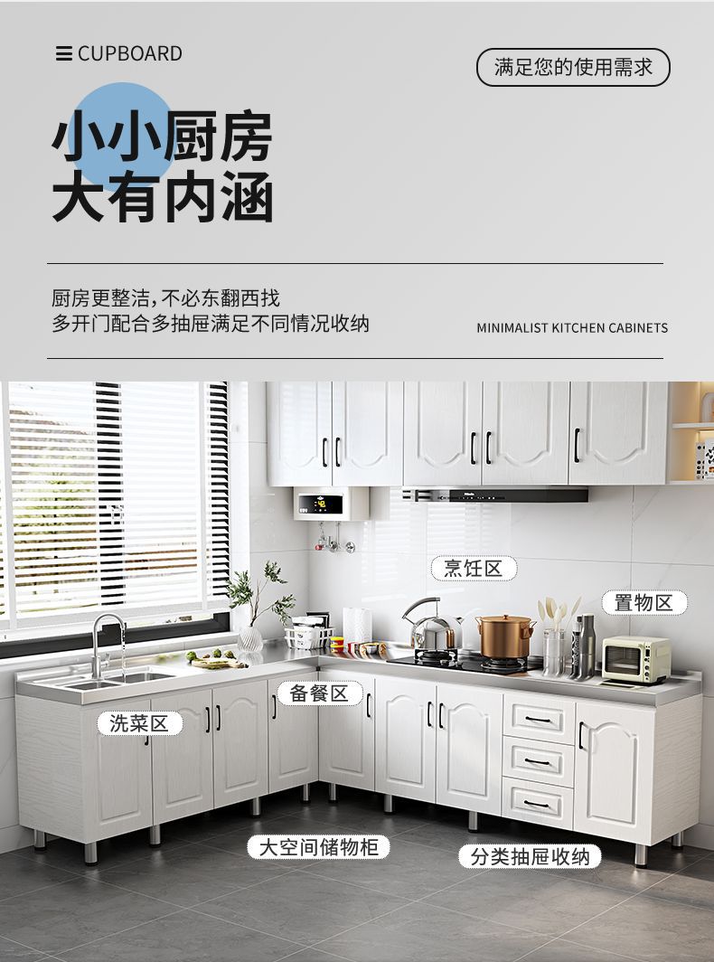 새로운 주방 캐비닛, 스토브 캐비닛, 일체형 스테인레스 스틸 싱크대, 일체형 찬장, 농촌 가정용 주방 보관 캐비닛