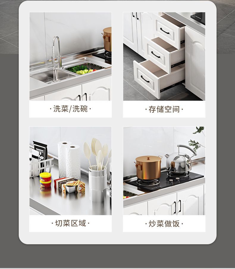 새로운 주방 캐비닛, 스토브 캐비닛, 일체형 스테인레스 스틸 싱크대, 일체형 찬장, 농촌 가정용 주방 보관 캐비닛스토어 가기
