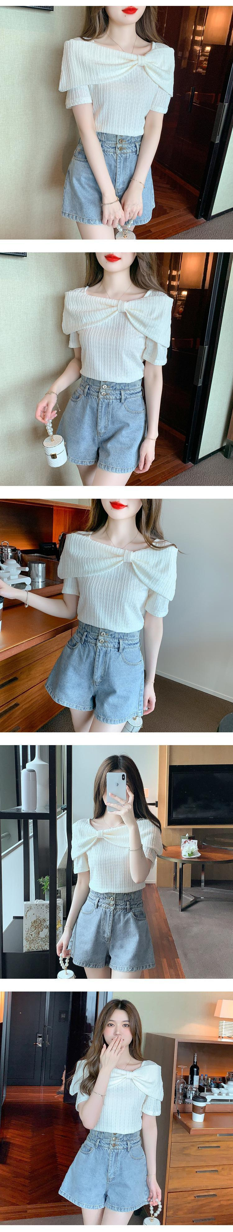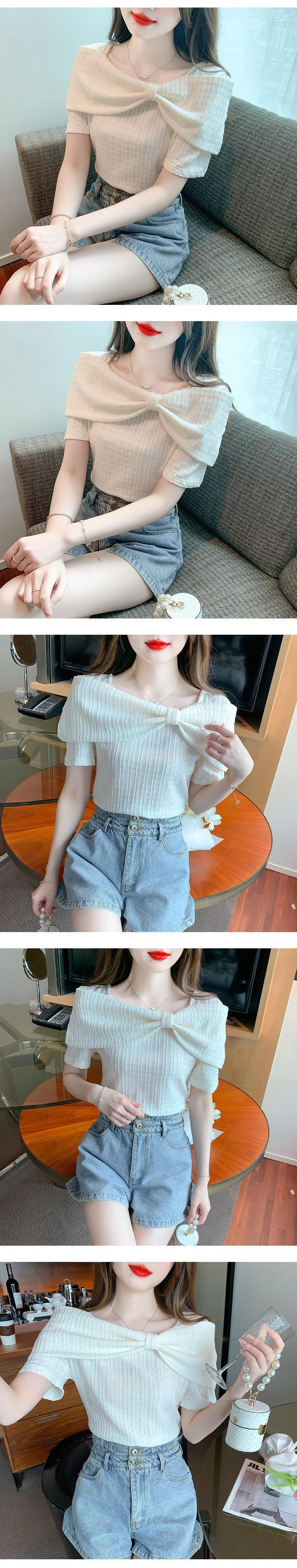 2024년 여름 여성을 위한 리본 원 숄더 반팔 티셔츠 새로운 디자인 쉬폰 탑 시크하고 아름다운 셔츠스토어 가기