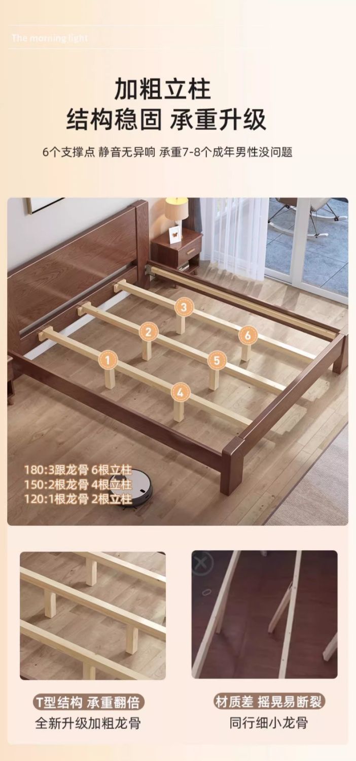 • *호두색 원목 침대 - 고무나무 + 소나무 침대판