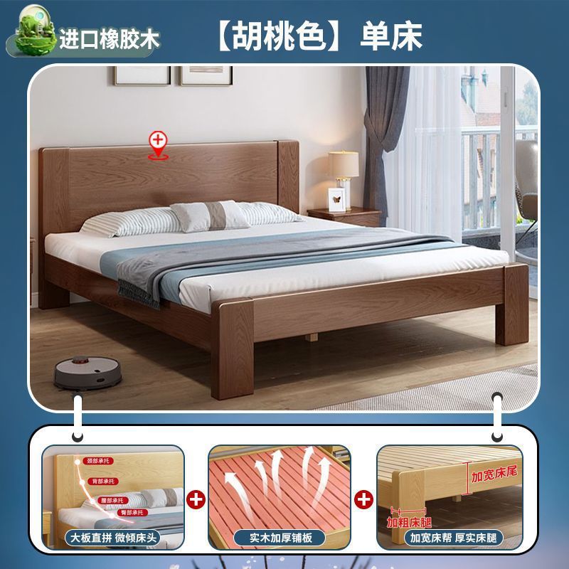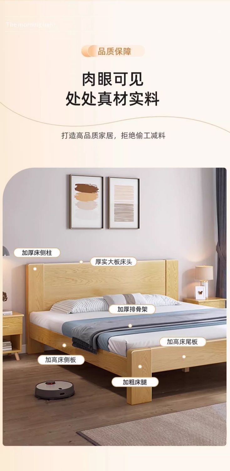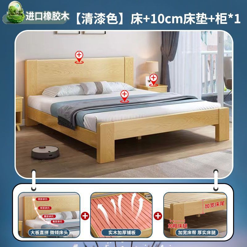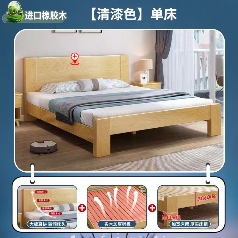 침대 원목 침대 1.5m 가정용 1.8m 마스터 침실 더블 침대 소형 아파트 1.2m 임대 간이 싱글 침대스토어 가기