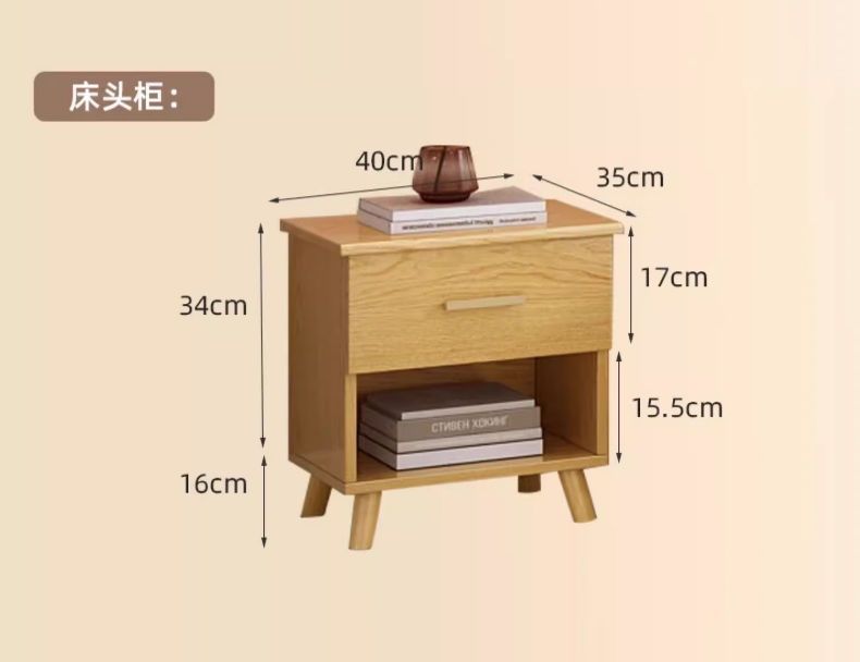 • 광택 색상 원목 침대+10cm 매트+캐비닛*1
